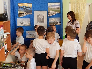 Ребёнок-экскурсовод приводит посетителей в музей завода. По выставленным там картинам и фотографиям он рассказывает об истории развития предприятия, о знаменитых авиаконструкторах и моделях самолётов, которые выпускает завод. В зависимости от количества участников игры и желания детей экскурсоводов может быть несколько. Все сообщения дошкольники делают самостоятельно, опираясь на информацию, полученную в процессе предварительной работы.