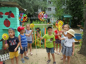 Наличие воздуха в помещении и на улице наши воспитанники определяют с помощью пакетов, а по ладошке, которую видно сквозь пакет, дети делают вывод: воздух прозрачный. А когда воздух приходит в движение, то возникает ветер, присутствие которого и силу ветра мы вместе с детьми определяем с помощью самодельного прибора анемометра. На данном приборе размещены разные предметы – ленточки, погремушки, колокольчики, колпачки, гирлянды с цветами. Они разные по весу: одни лёгкие, другие тяжёлые.