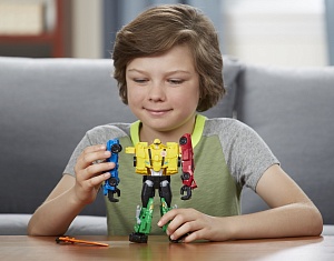 К премьере мультсериала на телеканале «Карусель» компания Hasbro приурочила выход своей супер новинки: с Тим Комбайнером ребёнок узнает ценность работы в команде. Ведь Тим Комбайнер - не просто игрушка, а новый формат игры с любимыми героями: каждый робот может трансформироваться по отдельности, но также все они объединяются в одного большого Трансформера. В самом «дружном» трансформере собраны сильные стороны всех участников команды и вместе они поистине непобедимы! В команду Автоботов - Ультра Бамблби - входят Бамблби, Стронгарм, Сайдсвайп и Гримлок. А Мегатрон собрал команду из целых пяти Десептиконов, в которую вошли Мотормастер, Дрэгстрип, Слэшмарк, Хитсикер и Вайлдбрейк. Объединив эти фигуры вместе, можно создать супер мощного и несокрушимого в битве робота. Какая команда окажется сильнее – решит увлекательная игра!