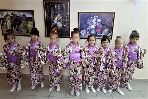Сенсей: Национальная японская одежда – кимоно. У кимоно нет пуговиц, зато есть пояс оби, он завязывается на спине. У женского кимоно пояс всегда очень широкий, на спине его укладывают в бант, похожий на подушку. Мужской пояс более узкий. (Дошкольники под японскую музыку Lotus.Secret Garden демонстрируют костюмы в японском стиле.)