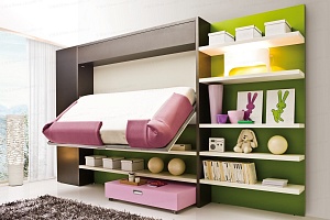 Фокусами с изменением размера мебели, пожалуй, уже мало кого удивишь. А что, если кровать трансформируется в… шкаф? И такое возможно. Называется подобная мебель полифункциональной и замечательно походит для детских комнат небольших размеров. Широко распространены различные варианты сборки кровати в шкаф или стенку. То есть спальное место весь день находится в поднятом виде, располагаясь вдоль по стене. К тому же обычно предусмотрены ниши для хранения вещей. И вся площадь комнаты свободна для игр! Встречаются и совсем интересные варианты совмещения кровати и стола. Или же выдвижные столы. Фабрики охотно работают с такой мебелью-трансформером и по вашим индивидуальным чертежам. Так что смело фантазируйте!