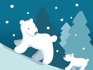 Белый медведь обитает в северной Арктике, России, Канаде, Аляске. Это огромный красавец-зверь, любимец посетителей зоопарка, в природе совсем небезобиден. Он самый крупный по размеру хищник в мире. Отличный охотник, хитрый и терпеливый, с острым чутьём. Он часами караулит свою добычу на льду у лунки. Прыгает медведь в воду и плывет, загребая огромными лапами. Его густая шерсть не намокает и вместе с толстым слоем подкожного жира защищает от холода. Медвежата, как и наш Умка, появляются зимой: в декабре и феврале. Медведица кормит их молоком. Очень заботится о них. К весне они подрастают, и мать учит их плавать и охотиться.