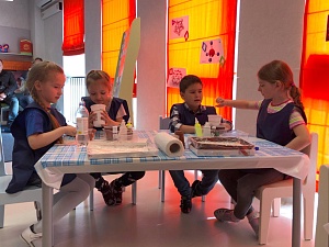 Учёный: Теперь полный порядок, и мы приступаем. (Можно предложить ребёнку комментировать действия Учёного). Сначала в контейнер выдавим из тюбика клей ПВА, добавим немного краски, чтобы придать цвет. Размешаем. Добавим ложку картофельного крахмала. Перемешаем. На что похоже содержимое контейнера? (На кашицу. Она липкая, но ещё не мылится.) Выльем один колпачок перекиси водорода, что придаст нашей игрушке тягучесть и пластичность. Вымешиваем. Содержимое стало похоже на что? (Ответы детей. Первая стадия достигнута.)