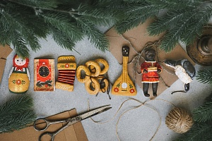 Вырезаем форму балалайки из картона. Обклеиваем заготовку малярным скотчем со всех сторон. Накладываем 2 слоя ваты на одну из сторон балалайки, обрываем края по форме, приматываем нитками, создавая округлую форму. Другая сторона остаётся ровной. Накладываем не очень толстый слой ваты на оду из сторон заготовки, обрываем по форме.Кистью наносим клейстер на одну из сторон заготовки, кладём сверху вату, промазываем клейстером разглаживая широкой кистью или руками. Аналогично с другой стороны. Сушим игрушку. Расписываем её, нанося рисунок в соответствии с фото. Отрезаем 3 нитки (струны), приклеиваем на клей.