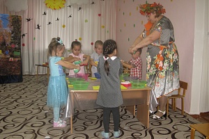 Воспитатель: А теперь на каждый цветок посадите бабочку и угостите нектаром. Кира, сколько бабочек село на цветы?