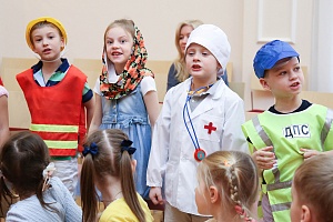 И кем станете – скажу. (Цыганка проводит игру с карточками «Найди пару. Профессии». Карточки разложены на ковре рубашкой вверх. Число пар по количеству детей. За один ход ребёнок переворачивает две карточки. Если они одинаковые, то забирает их и отправляется примерять костюм. Игра продолжается до тех пор, пока каждый ребёнок не найдёт свою профессию и не примерит костюм.)