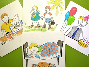 Если ваш ребёнок ещё не научился читать, игровая задача ставится на основе карточек-схем. Обучающая ценность такого варианта игры состоит в том, что дети, рассматривая схематичное изображение, учатся восприятию схемы и перенесению её на реальный образ или ситуацию.