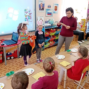 Зайцы Коська и Мотя в гостях у ребят