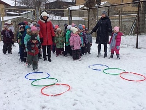 Дядя Фёдор: Ребята, посмотрите, какие сугробы намело! (Слышны звуки ветра, метели.) Мы с Печкиным сами ни за что не найдём дорогу к Шарику с Матроскиным. Поможете нам? (Дети выражают готовность помочь в поисках Шарика и Матроскина.) В этих сугробах спрятаны снежки с заданиями. Они помогут вам стать ещё сильнее и укрепить своё здоровье.