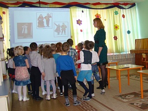 Воспитатель: Какие ещё русские сказки вы помните? (Дети называют сказки «Колобок», «Кот, петух и лиса», «Теремок».) Молодцы! В них добро всегда побеждает зло, многие из них волшебные. Но почему эти сказки называются народными? (Дети отвечают на вопрос.)