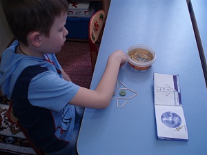 Логопед: Сегодня мы отправляемся в необычное путешествие. Мы будем с тобой, как космонавты осваивать космос, открывать новые неизведанные планеты. Перед дальней дорогой нам необходимо размяться. (Проводится разминка: дыхательное упражнение «Ракета». Вдохнуть, руки медленно поднять через стороны вверх, ладони прикасаются к друг другу, подняться на носки, потянуться вверх, задержать дыхание, медленный выдох со звуком «А», руки в такт выдоху опускаются через стороны вниз.)Логопед: Наша разминка закончена. Мы отправляемся в космическое путешествие. Но, прежде чем мы полетим на ракете, её необходимо выложить из палочек. Открываем первую страницу книжки. (Ребёнок выкладывает ракету из палочек.)