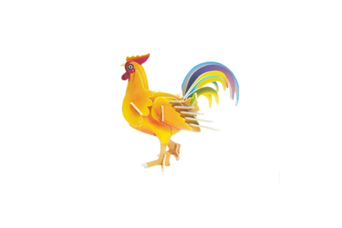Сборная деревянная модель «Петух» представляет собой самца курицы, а в более широком смысле — самцов всех птиц из отряда курообразных. Внешне он обычно отличается от курицы крупным гребнем и серьгами, а также пышным и часто многоцветным хвостовым оперением. Этот творческий набор входит в серию «Животные» и предназначен для детей от трёх лет и старше. В комплект входят: 3 пластины-основы размером 23х15,5х0,3 см; 42 детали; схема сборки. Вес набора составляет 210 г. Все детали сборной модели «Петух» MC010 уже окрашены в яркие цвета, и ребенку остается лишь собрать игрушку, при необходимости используя клей ПВА. Размер готовой модели — 18,5х20,5х10,5 см. Моделирование способствует развитию мелкой моторики, абстрактного и логического мышления, усидчивости, точности движений и памяти.