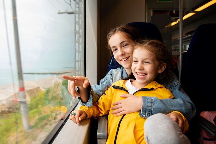 - С ребёнком можно интересно провести время, удобно устроившись в купе у окна, и наблюдая за всем, что происходит за пределами поезда. Поясняя детям увиденные сюжеты, рассказывая о железнодорожном транспорте, придумывая разные истории о животных, людях, считая проезжающие машины.