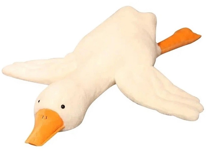 Гусь-обнимусь (или просто "гусь") – стала популярной из-за своего уютного и мягкого вида, приятной на ощупь ткани и набивки, а также большого размера, что делает ее удобной для объятий и сна с ней. Эти качества делают гуся отличным выбором для подарка как детям, так и взрослым, особенно в качестве знака внимания или проявления заботы.