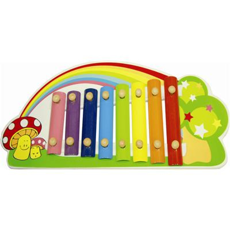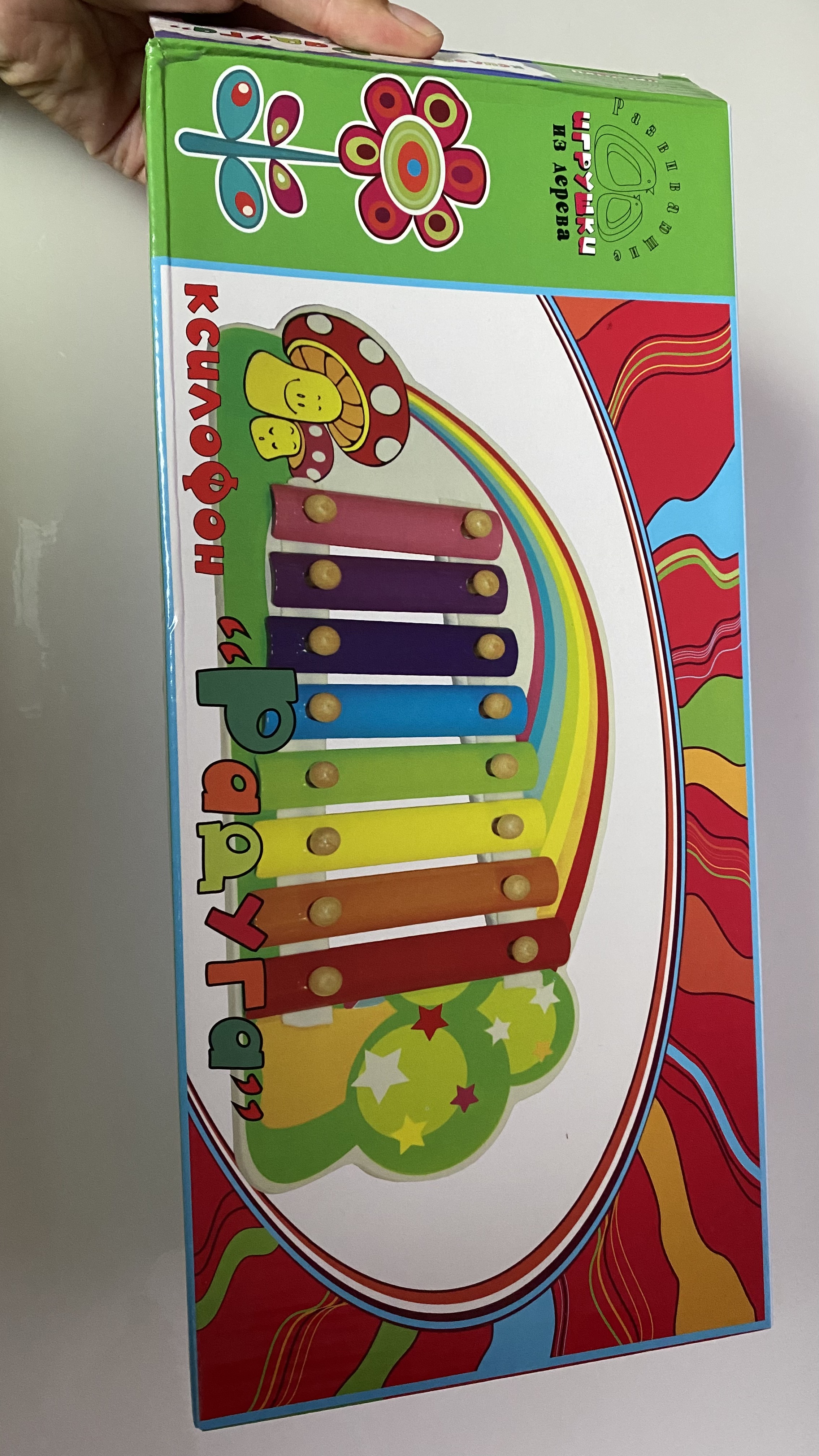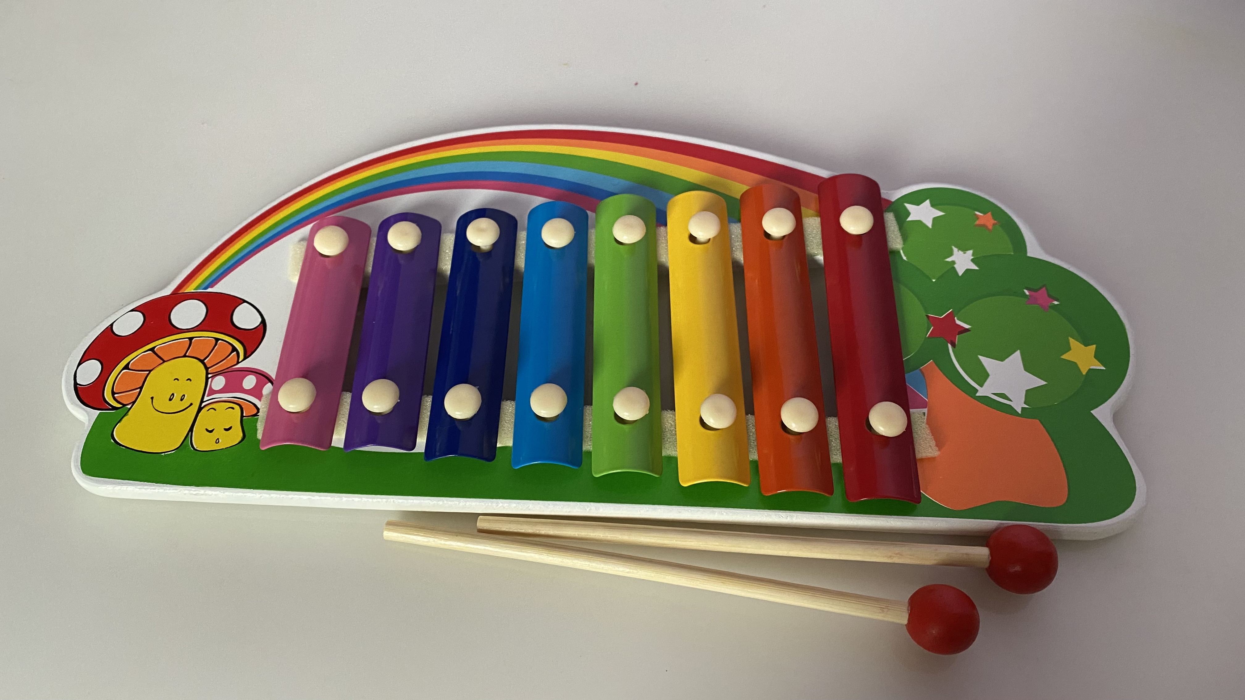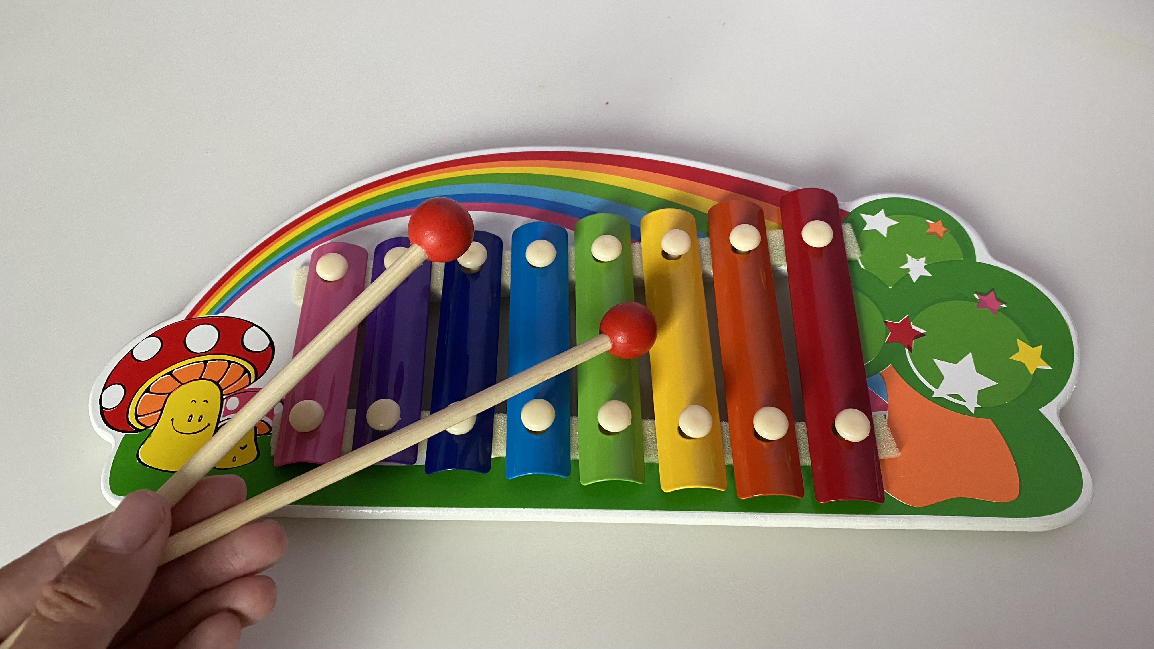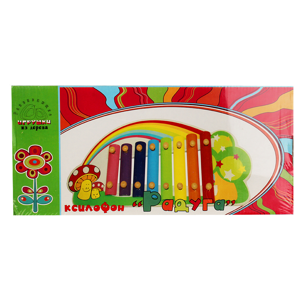 Деревянный ксилофон «Радуга» – это простая музыкальная игрушка для детей от трёх лет и старше. Яркий инструмент представляет собой деревянное основание, на котором закреплены металлические пластины разного цвета и длины. Восемь радужных клавиш – это восемь красивых звонких звуков, которые извлекаются при помощи двух палочек с круглыми наконечниками. Игровой элемент заинтересует юных музыкантов своей оригинальной формой и яркой расцветкой, вызовет у них массу положительных эмоций. С помощью нехитрого звукового приспособления мальчики и девочки разовью музыкальный слух, чувство ритма, интересно и весело проведут свой досуг.