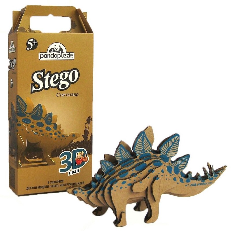 3D-пазл Panda Puzzle «Стегозавр» состоит из 18-и деталей, размер модели в готовом виде 12 х 21 х 6 см, вес – 39 гр. Вес фигуры в упаковке – 96 гр. Этого динозавра называют ещё колючим динозавром из-за двойного ряда костных пластин на спине и шипастого хвоста. Растительноядный стегозавр мог вставать на задние лапы, чтобы достать листья и ветки. У него была маленькая голова с клювом и массивное тело длиной до 8 метров.
