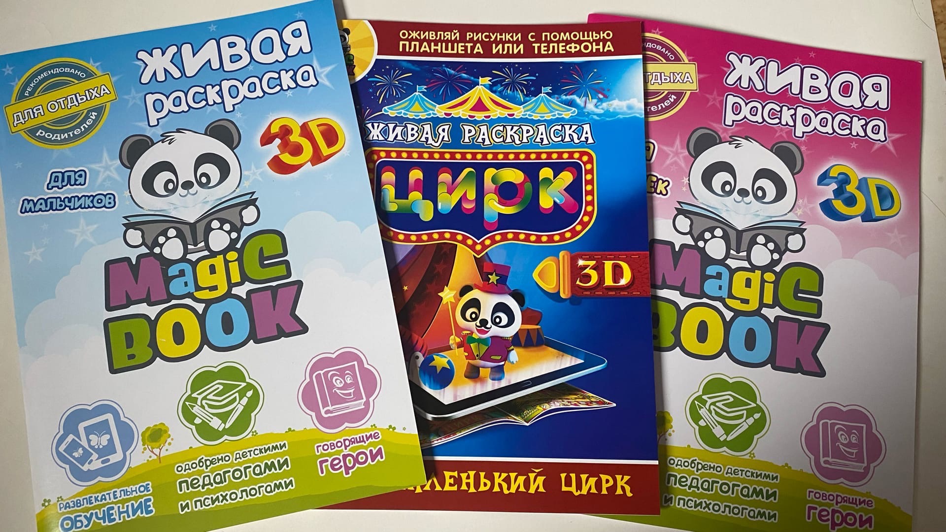 Компания Magic Book выпускает раскраски для мальчиков и для девочек. Раскраски рекомендуются к использованию детьми старше двух лет. Каждая из книжек состоит из 24-х страниц, упакованных в твёрдую цветную обложку. «Для мальчиков» книжечка представлена в голубом цвете и на страницах оживают роботы, трансформеры и машины. «Для девочек» раскраска в розовой обложке, и раскрашивать нужно принцесс, единорогов и кукол. «Цирк» имеет яркую обложку и является универсальным вариантом, который подойдет и мальчикам, и девочкам.