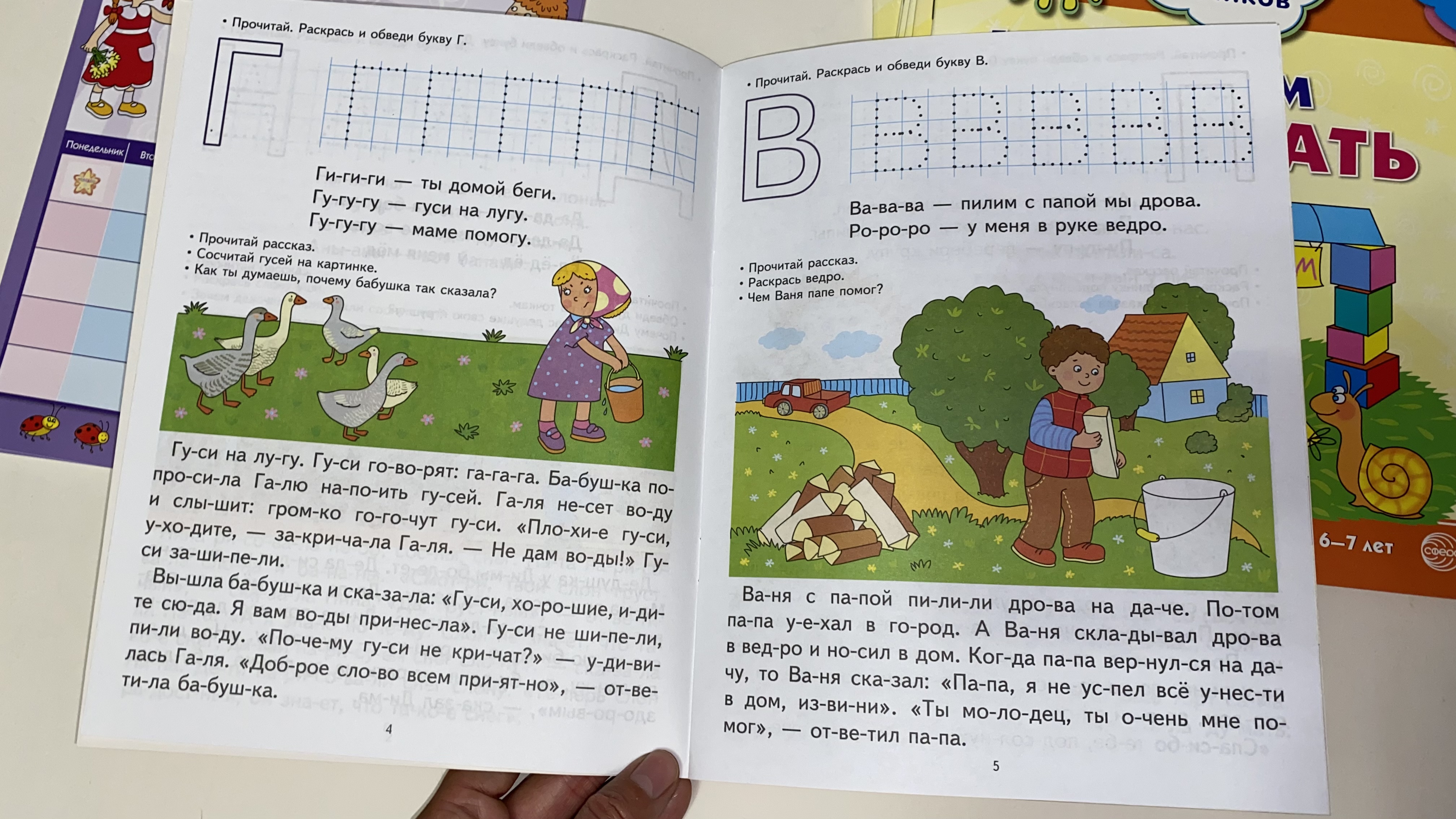 Тут есть материалы, из тонкого картона, которые нужно вырезать. Всё крупное, понятное и доступное, как для ребёнка так и для родителя. Раскрыты многие полезные темы. Ребёнок занимается с удовольствием, особенно работает схема поощрений наклейками. До этого ребёнок никак не хотел заниматься.