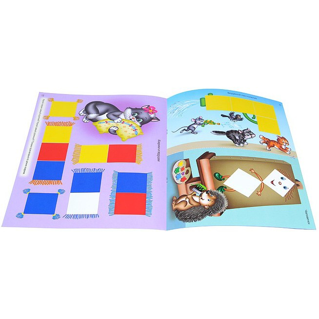 Альбом заданий "Сложи узор" для малышей – игровое пособие для занятий с одноимёнными кубиками Никитина "Сложи узор". Здесь представлены игровые задания с кубиками для самых маленьких детей, начиная с двух лет (2+). Этот альбом, как и кубики, выпускает петербургское предприятие ООО "Корвет". Изделия имеют сертификат качества и безопасны для использования. Для печати альбома использована плотная мелованная бумага, которая отличается качеством и долговечностью использования.