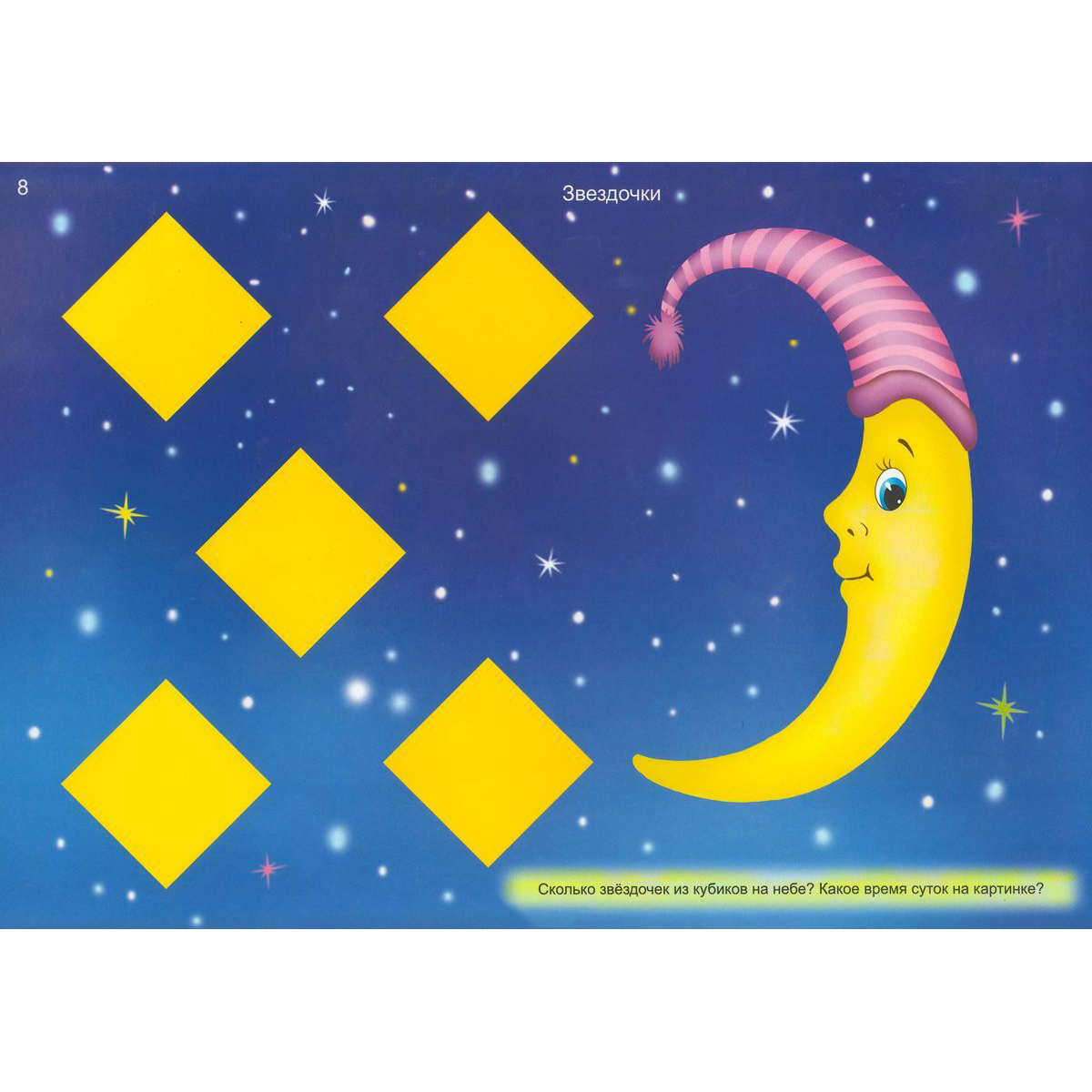 Альбом включает в себя 22 страницы интересных развивающих заданий, имеет мягкую обложку. Альбом разработан для малышей, поэтому имеет крупные яркие картинки, привлекающие внимание. Размер альбома 29,5 х 21 см. Целью ребёнка является "дорисовка" изображений с помощью кубиков методом наложения. Каждая картинка альбома содержит цветную схему расположения кубиков, при этом соблюдается масштаб 1:1 с обязательным выделением контура.