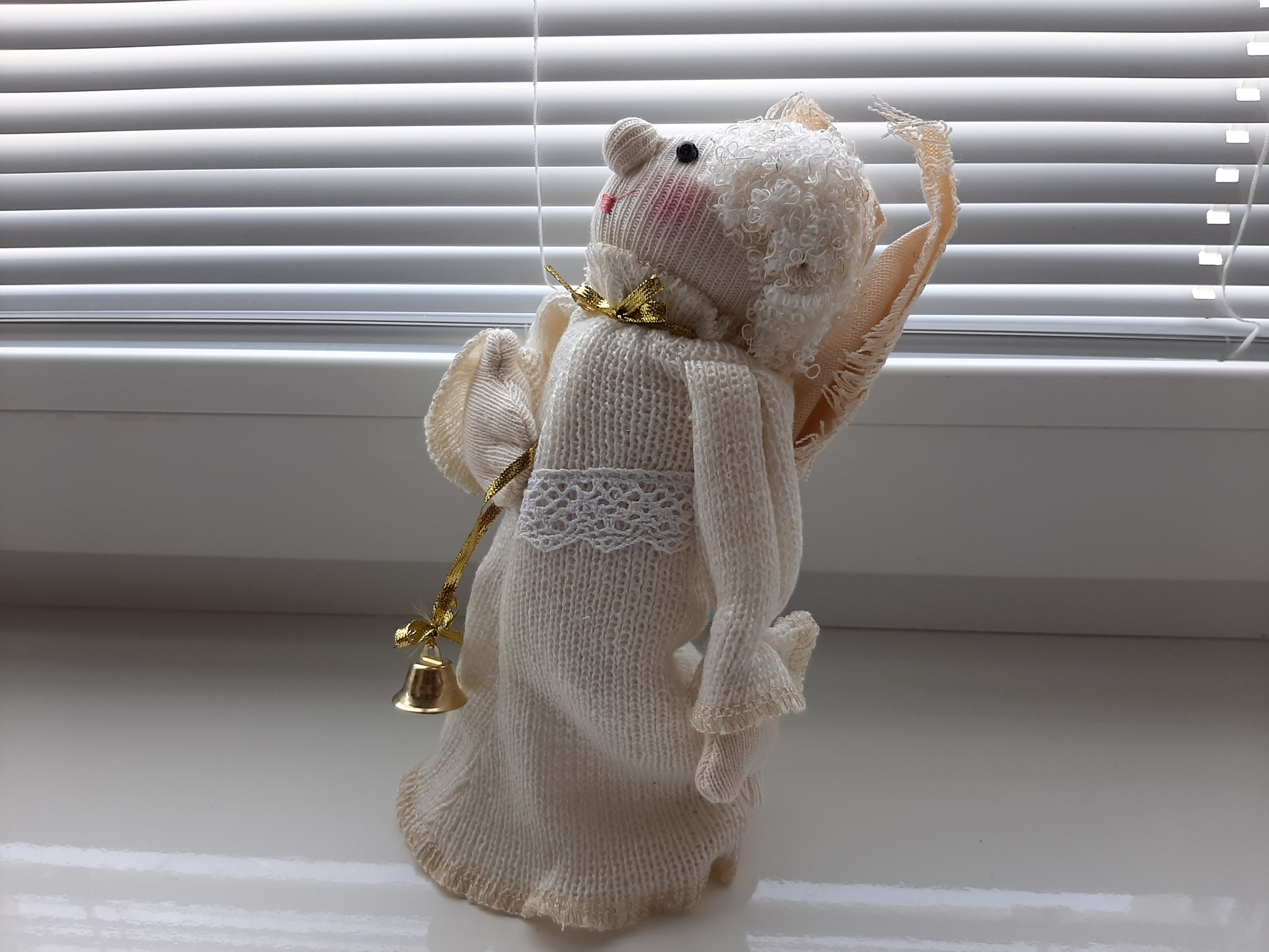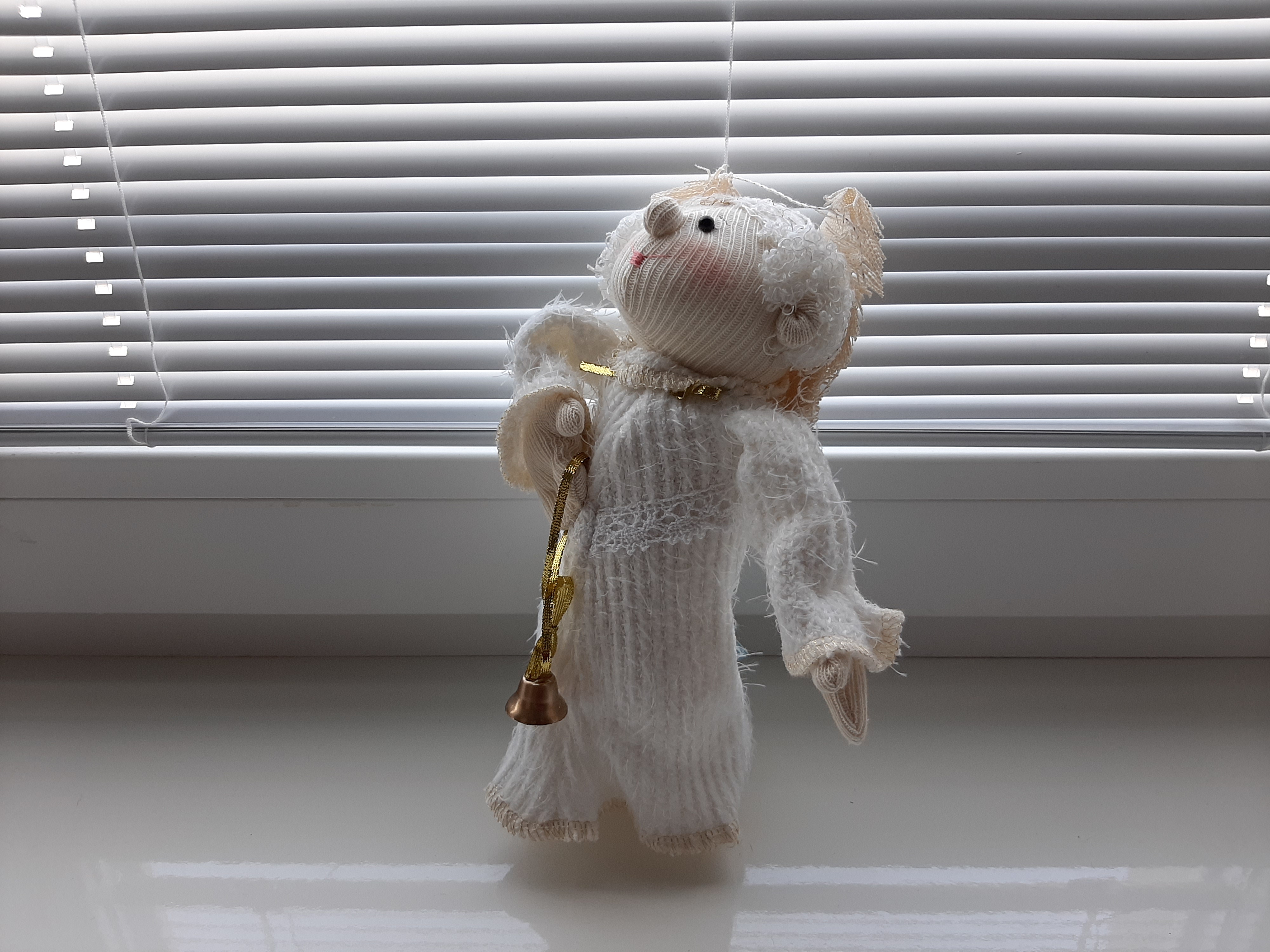 Белоснежный, с добрым личиком парит ангелок и нежный звон его колокольчика несет добрую весть.