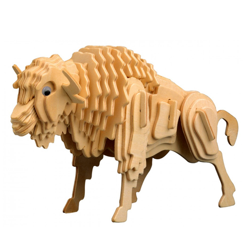 В наборе «Бизон» М027 имеется много деталей, которые ребенок должен соединить между собой, чтобы у него получился большой бизон. Каждая деталь набора хорошо отшлифована, пори необходимости можно использовать наждачную бумагу (есть в наборе). Преимущества таких игрушек, заключаются не только в развитии ребенка, но и в том, что они являются безобидными для жизни и здоровья маленького непоседы. Производители использовали только качественную древесину. Игрушка не окрашена, готовую модель можно раскрасить или покрыть лаком.