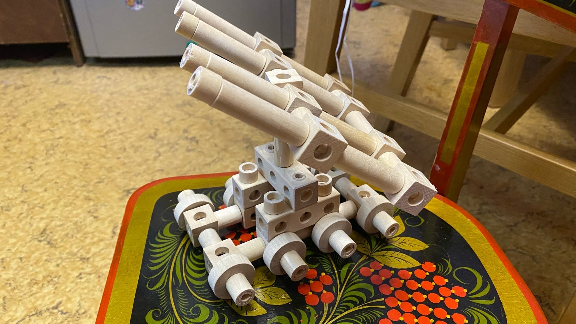 Конструктор "Зенитная установка" состоит из 111-и элементов. Вместе с набором идёт подробная инструкция по сборке зенитной установки. Ребёнок может шаг за шагом соединять детали, опираясь на инструкцию. Элементы представляют собой пружинные штифты, кубики и цилиндры. Для их изготовления используется неокрашенная древесина сибирской берёзы. Детали крупные, гладко обработанные и уже готовые к окончательной сборке. Они легко соединяются между собой без клея и шурупов. По окончанию процесса сборки перед ребёнком появится почти настоящая зенитная установка, только она меньше и сделана из дерева. У неё есть пушки, а более реалистичный вид ей придают большие колёса. У детей получится боевое орудие для ролевых и сюжетных игр. После постройки зенитной установки можно покрыть её лаком или безопасными разноцветными красками. Дерево является отличным материалом для творчества. Он натуральный, прочный и легкий. Размер собранной фигуры – 9 х 16 х 12 см. Размер упаковки – 10 x 10 x 18 см.