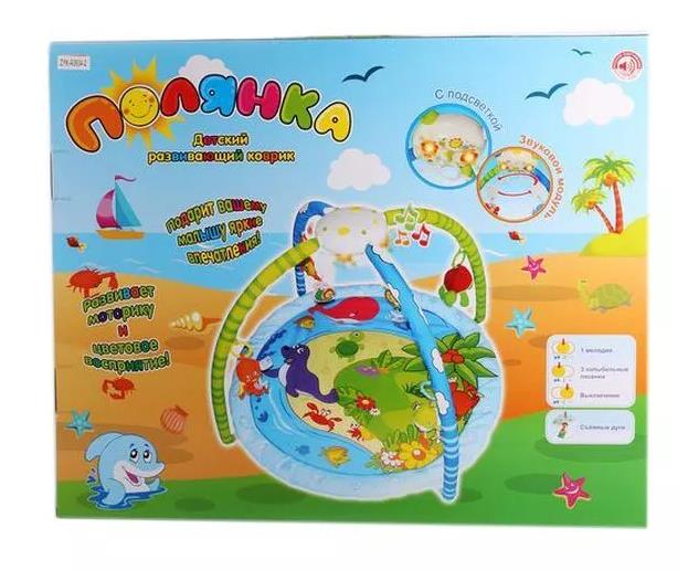 Детский развивающий коврик "Полянка" развивает моторику и цветовое восприятие. Подарит малышу яркие впечатления. Характеристика: звуковой модуль, подсветка, русское озвучивание.
