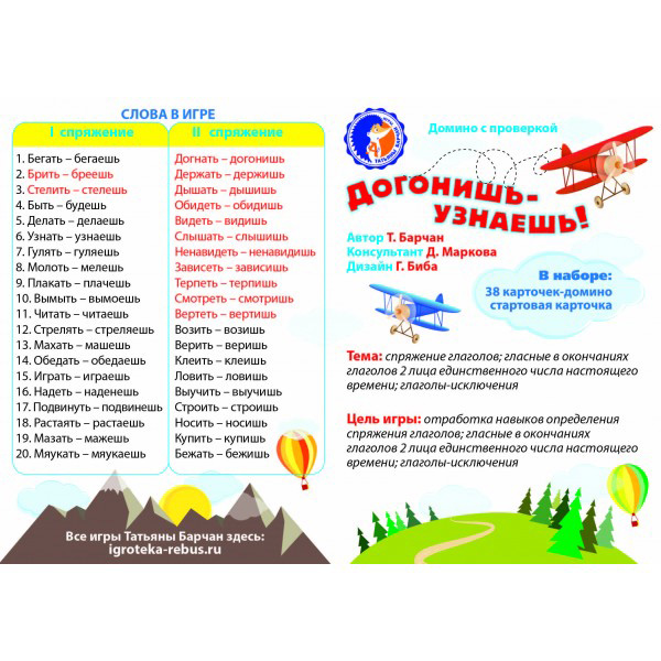 Каждая мама мечтает видеть своего ребёнка грамотным, чтобы он учился без ошибок, не спотыкался, правильно писал и разговаривал. Большая сложность возникает у школьников при изучении спряжения глаголов, гласные в окончании глаголов и глаголы-исключения. Освоить трудную тему и с пользой провести время поможет развивающая игра «Догонишь – узнаешь». Игра рекомендована для детей от восьми лет и старше (8+).