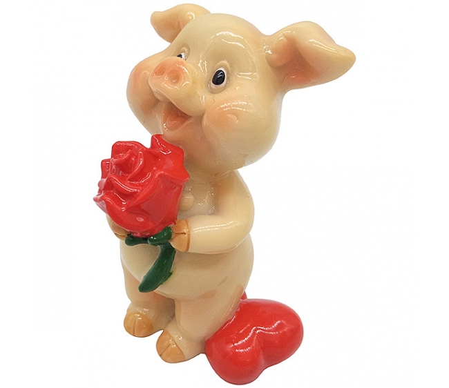 Фигурка «Символ года» Свинья представлена в ассортименте. Милая улыбчивая розовая хрюшка в различных позах и с разными атрибутами праздника в руках (большое алое сердце, цветок красной розы и т. д.) станет отличным подарком на праздники. Керамическая статуэтка размером 3 х 3,5 х 6 см имеет гладкую глянцевую поверхность и тщательно прорисованные черты мордочки. Симпатичная игрушка украсит интерьер комнаты, займёт центральное место на праздничном столе, станет приятным сюрпризом для близких людей. В качестве подарка фигурку можно использовать не только в Новый год. Благодаря разной атрибутики в руках хрюшки, она сможет порадовать в День всех влюблённых и в День рождения, а также станет небольшим, но приятным знакомом внимания.