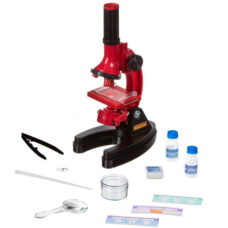 планете. Микроскоп обладает 100, 600 и 1200-кратным увеличением