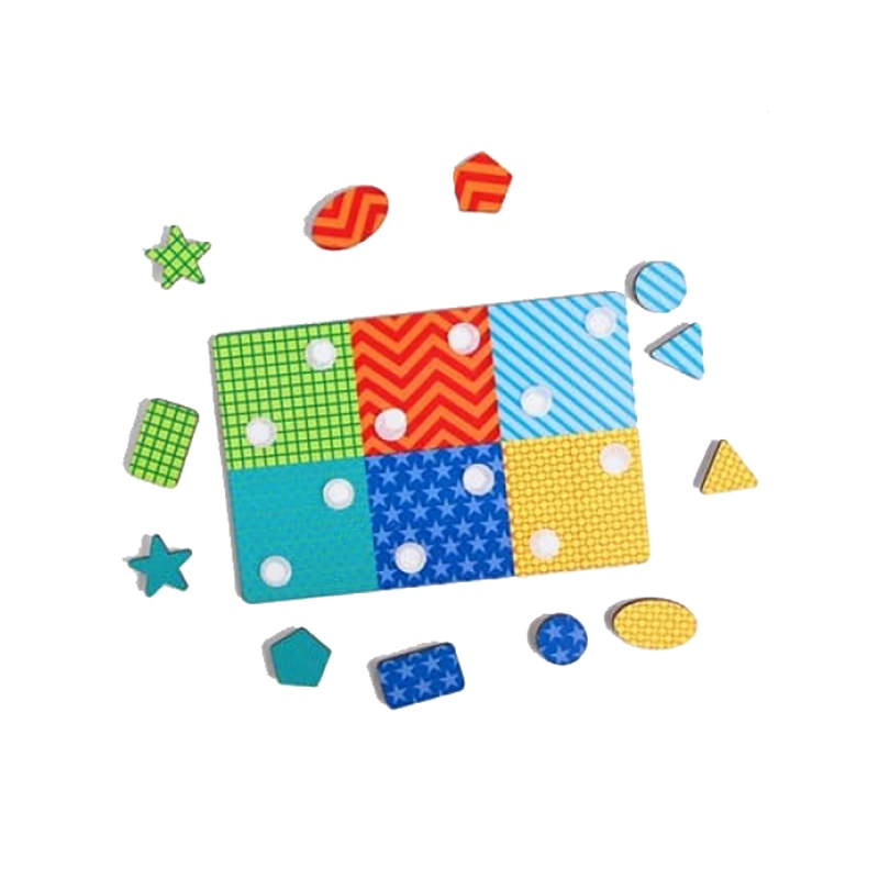 Складывать фигурки на панель, в соответствии с сектором. Узор и цвет геометрической фигуры должен совпасть с сектором на панели. Предложите ребенку найти «домик» или «коврик» для геометрических фигур.