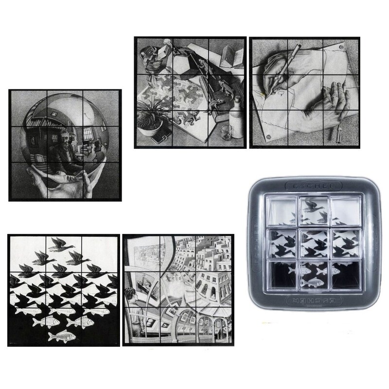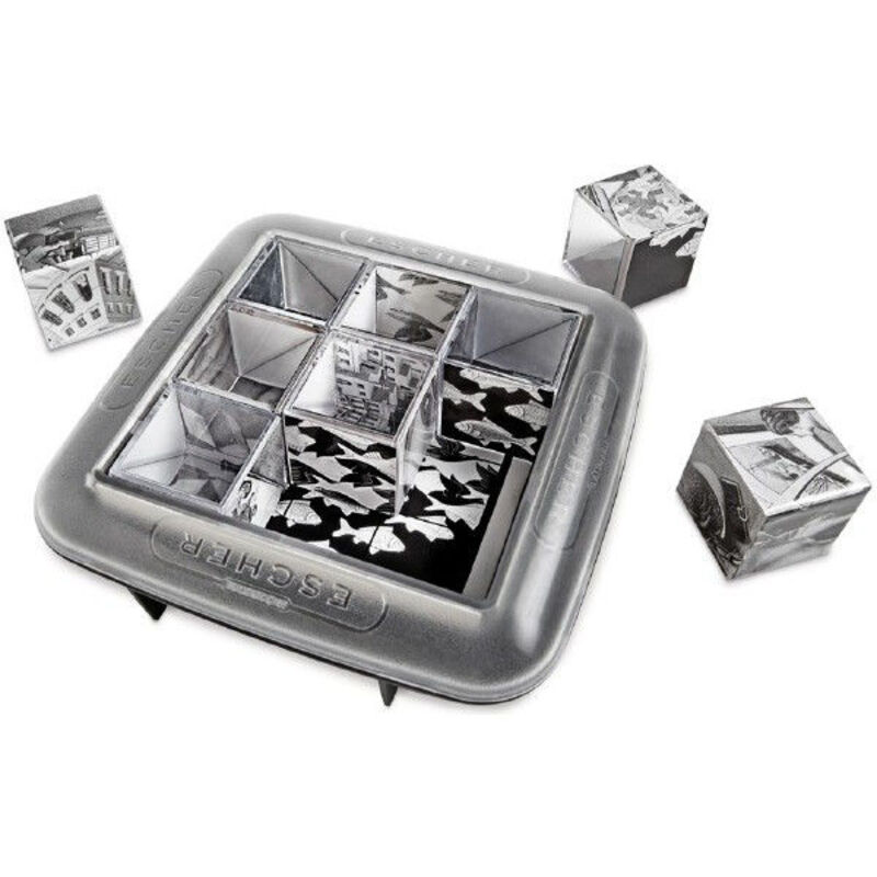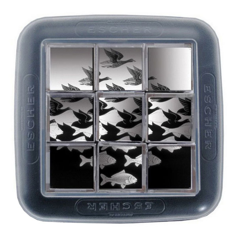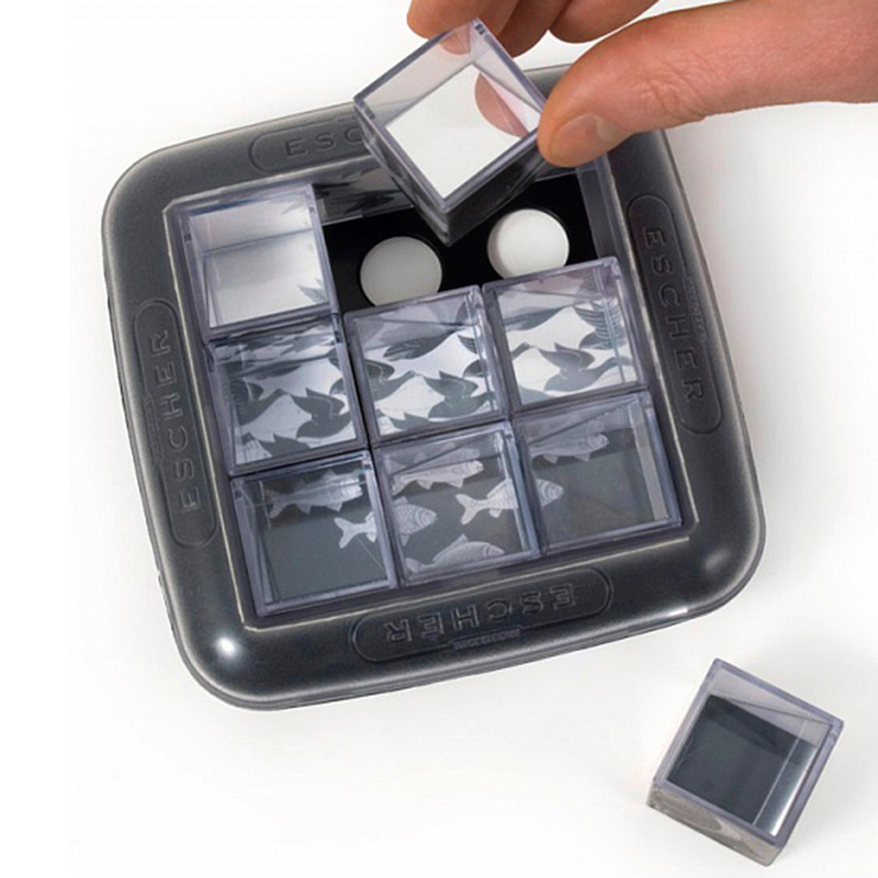 «Зеркальный Эшер» – это необычная головоломка, созданная на основе уникальных работ знаменитого нидерландского художника-графика Маурица Корнелиуса Эшера, который представлял и видел мир по-особому, создавал шедевры сюрреализма, глядя на которые мы восторгались, а наш мозг обманывал самого себя. На пяти его основных «метаморфозах»: «Небо и вода», «Рука с шаром», «Рептилии», «Рисующие руки» и «Выставка гравюр» создана головоломка «Зеркальный Эшер».