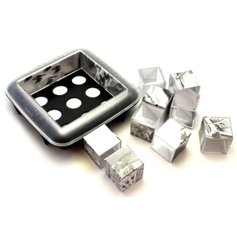 Давайте попробует рассмотреть удивительный игровой объект поближе. Он состоит из 9-и стеклянных кубиков 3 х 3 х 3 см каждый, находящихся в загадочной квадратной форме размером 13 х 13 х 3,5 см. К комплекту прилагается инструкция и пять маленьких копий исходных картин. Всё это упаковано в коробку из плотного многослойного картона блистерного типа. Размер упаковки 17 х 12,5 х 13,5 см. Вес игры 350 гр. Товар сертифицирован и имеет документ качества европейского образца. Игрушка рекомендована детям старше девяти лет (9+).