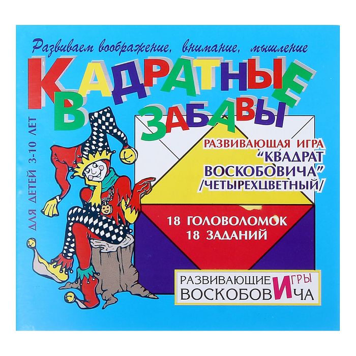 Игра «Квадрат Воскобовича четырёхцветный» от ООО Развивающие игры Воскобовича развивает зрительное восприятие, представления о геометрических фигурах, умение выделять отдельный элемент-треугольник из множества и объединять несколько геометрических фигур в один больший по размерам элемент, составлять из треугольников другие геометрические фигуры. Игра развивает память, мышление, ориентировку в пространстве, творческие способности. Она интересна детям дошкольного возраста и школьникам, в неё могут играть и взрослые.