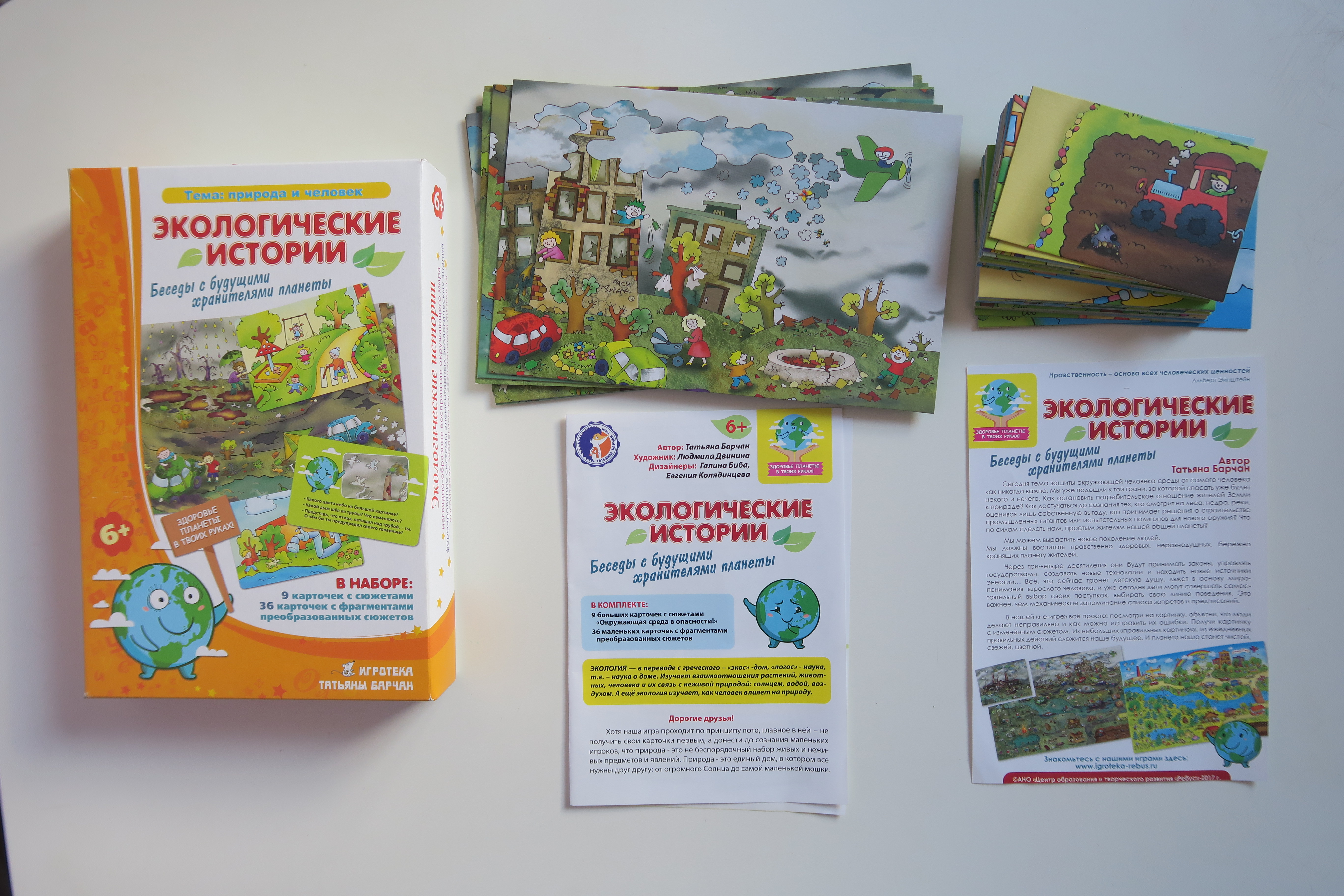 Дидактические игры Татьяны Барчан – нестандартные и очень интересные. Игровые пособия направлены на общее развитие ребёнка, развитие его логического мышления, фантазии, памяти, расширения кругозора и любознательности. Такие игры можно использовать как дома, так и в детских учреждениях, они непременно помогут в работе педагогам, психологам, логопедам и, конечно же, родителям. Школьники смогут в игровой форме закрепить правила грамматики и арифметики и сложные вопросы по другим предметам. Игра «Экологические истории» предназначена для детей старше шести шести лет (6+).