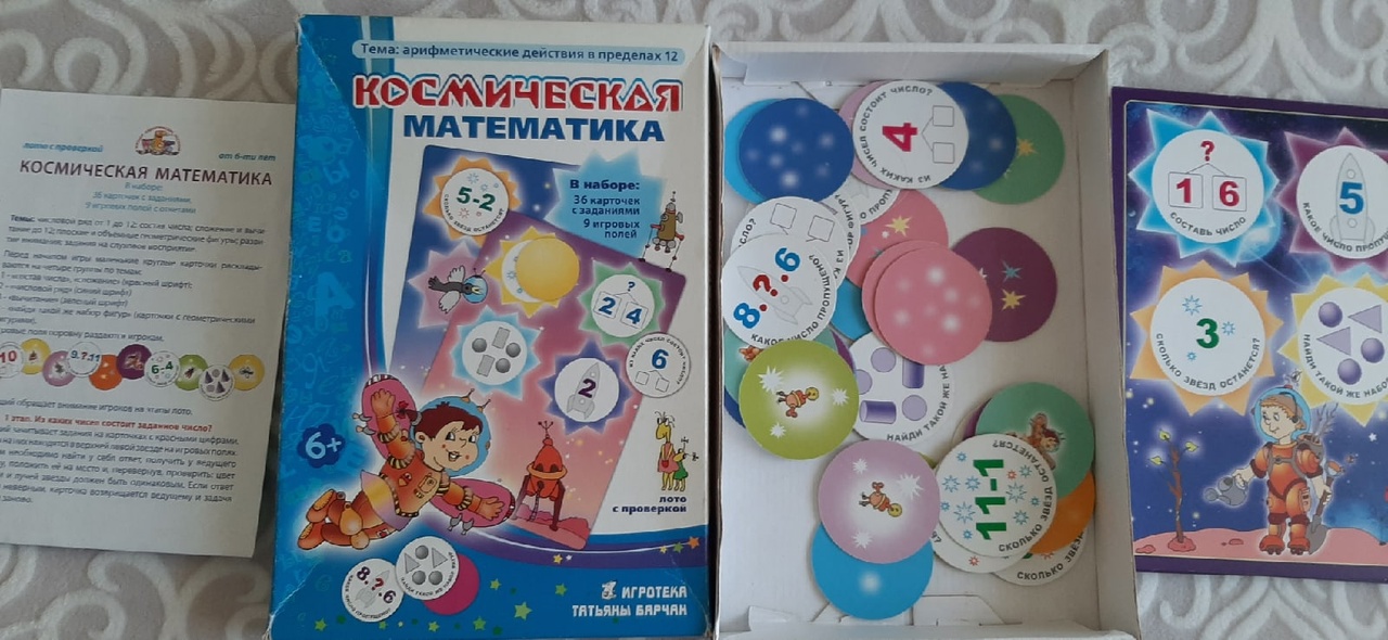 «Космическая математика» - это настольное лото с несколькими вариантами игры и интересными заданиями. Игра даст возможность вашему ребёнку интересно и весело провести свой досуг, и получить при этом навыки простейших арифметических действий, разбора состава числа.