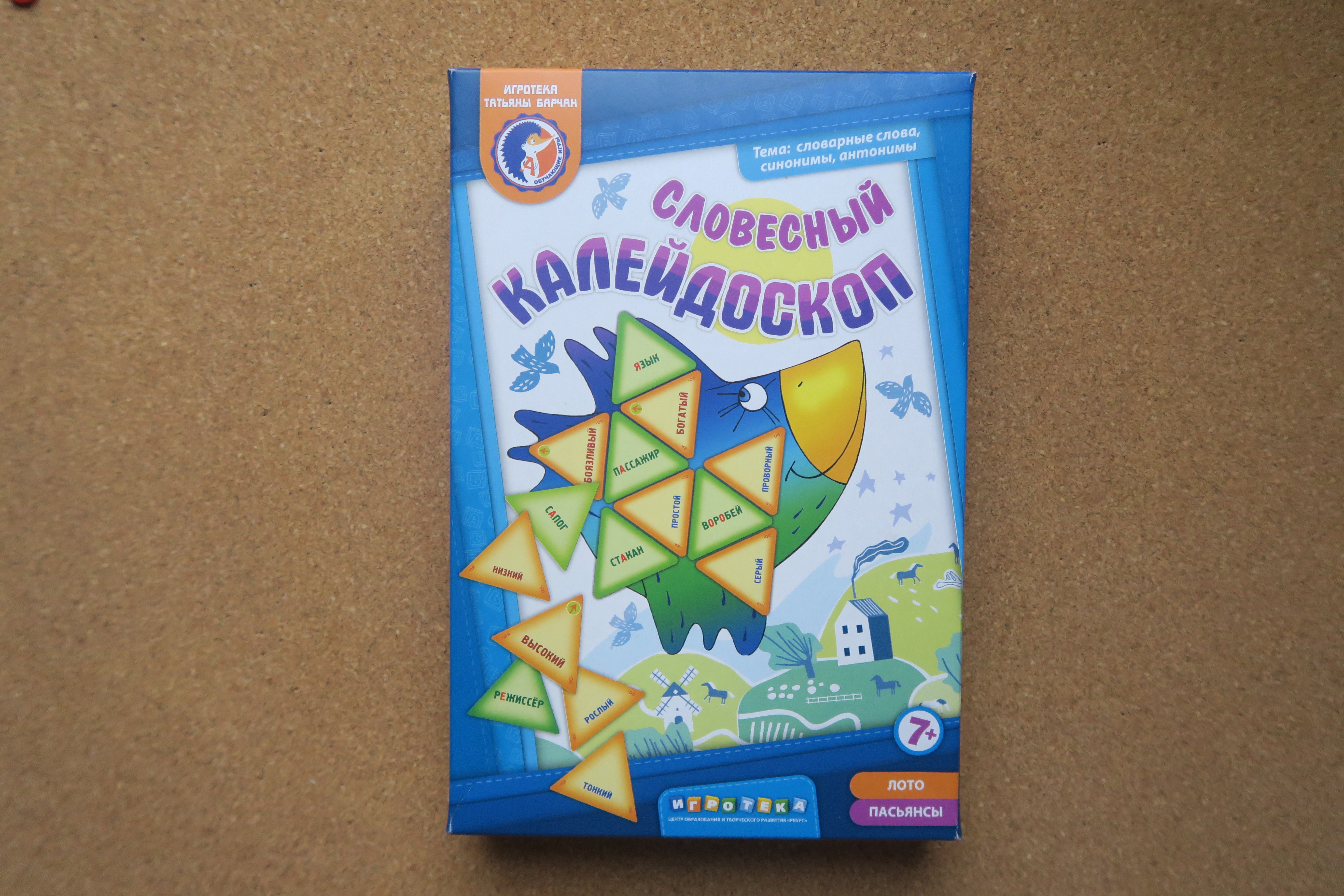 Здравствуйте, хочу рассказать про игру от автора Татьяны Барчан, от ЦОТР Ребус, которая называется "Словесный калейдоскоп". Это лото-пасьянсы по теме словарные слова, антонимы-синонимы. Для детей от 7 лет.