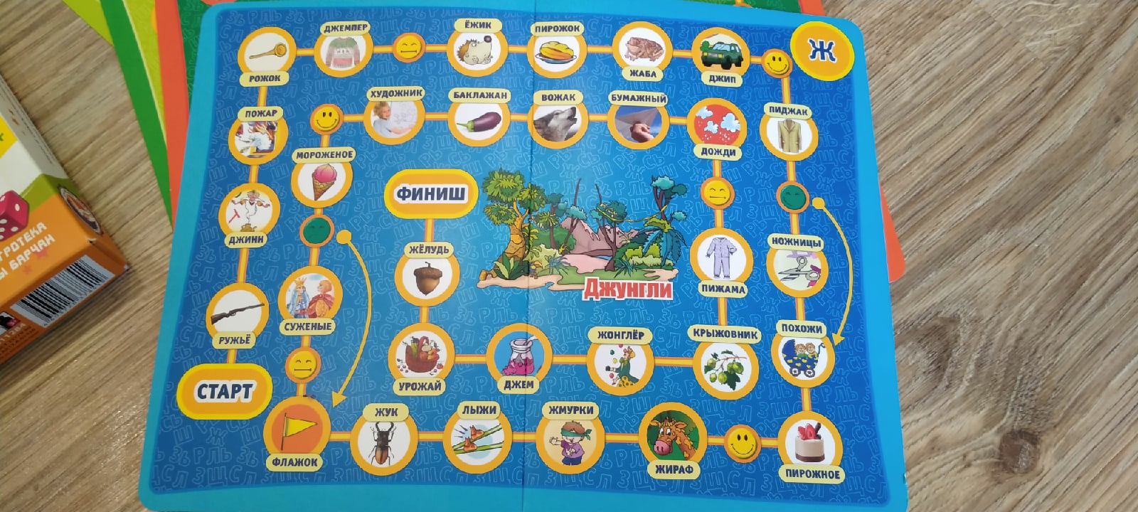 Среднее время игрового раунда 20-30 минут. Правила понятны и просты. На любую ровную поверхность кладётся одно из пяти игровых полей. Участники устанавливают пластиковые фишки в районе старта, выбрав перед началом свой цвет, и поочередно начинают кидать игральный кубик. Сколько выпало точек на одной из грани кубика, на столько картинок игрок должен передвинуть свою фишку. Но, при этом, ход засчитывается только тогда, когда ребёнок правильно назовет слово (фонетически) на котором остановилась его фишка. Карточки с заданиями используются дополнительно, если фишка попадает на картинку с желтым смайликом. Если фишка попадает на картинку с зеленым смайликом, игрок передвигается далее по указанной стрелке. Выигрывает тот участник игрового процесса , кто первым пришёл к финишу.