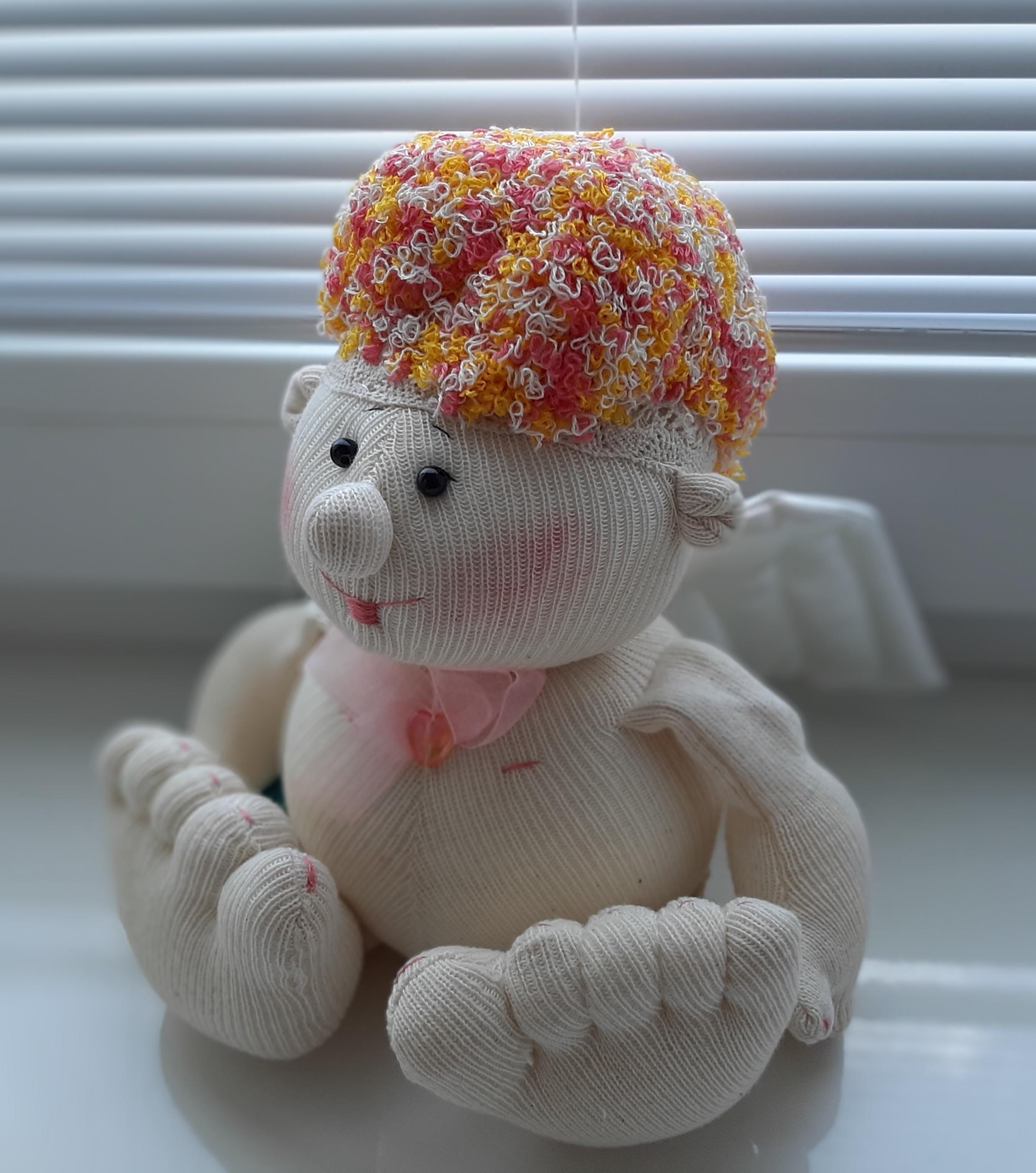 Амурчик, с которым я познакомилась совсем недавно, очень добрая, душевная игрушка, которая не несёт в себе ни капли негатива и агрессии. Рыжий озорной мальчишка с большими розовыми пяточками и курносым носом призван любить все окружающее его и способствовать созданию новой человеческой любви. Если вы не знаете что подарить своему другу или подруге, которая находится в активном поиске своей второй половинки, то эта кукла станет отличным вариантом для подарка! Все игрушки Ольги Крестьяниновой выполнены из натуральных тканей, они гипоаллергенны и не токсичны. Цена на игрушки ручной работы от этой компании довольно демократичная, честно говоря, даже кажется несколько занижена. Рекомендую к покупке каждому, кто верит в чудеса и волшебство!