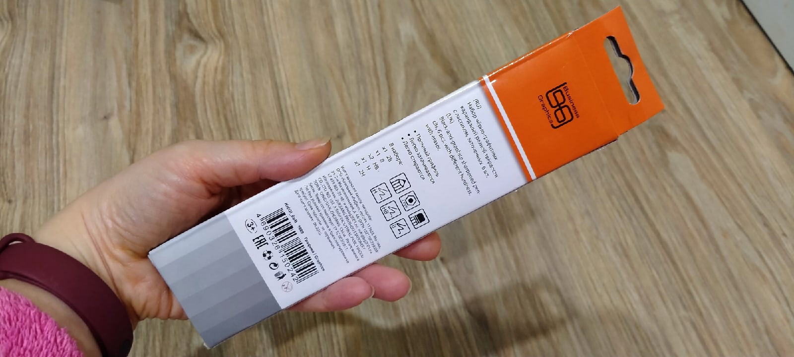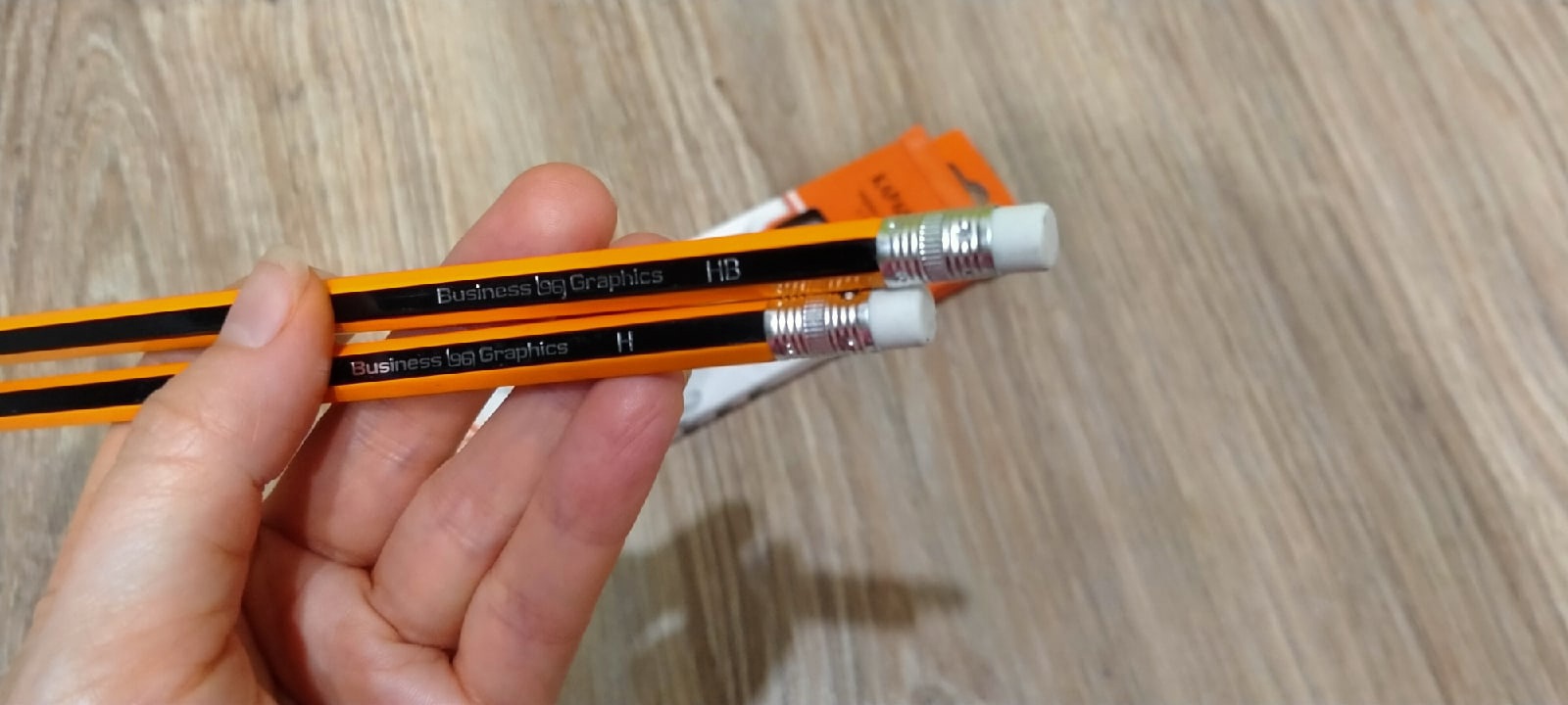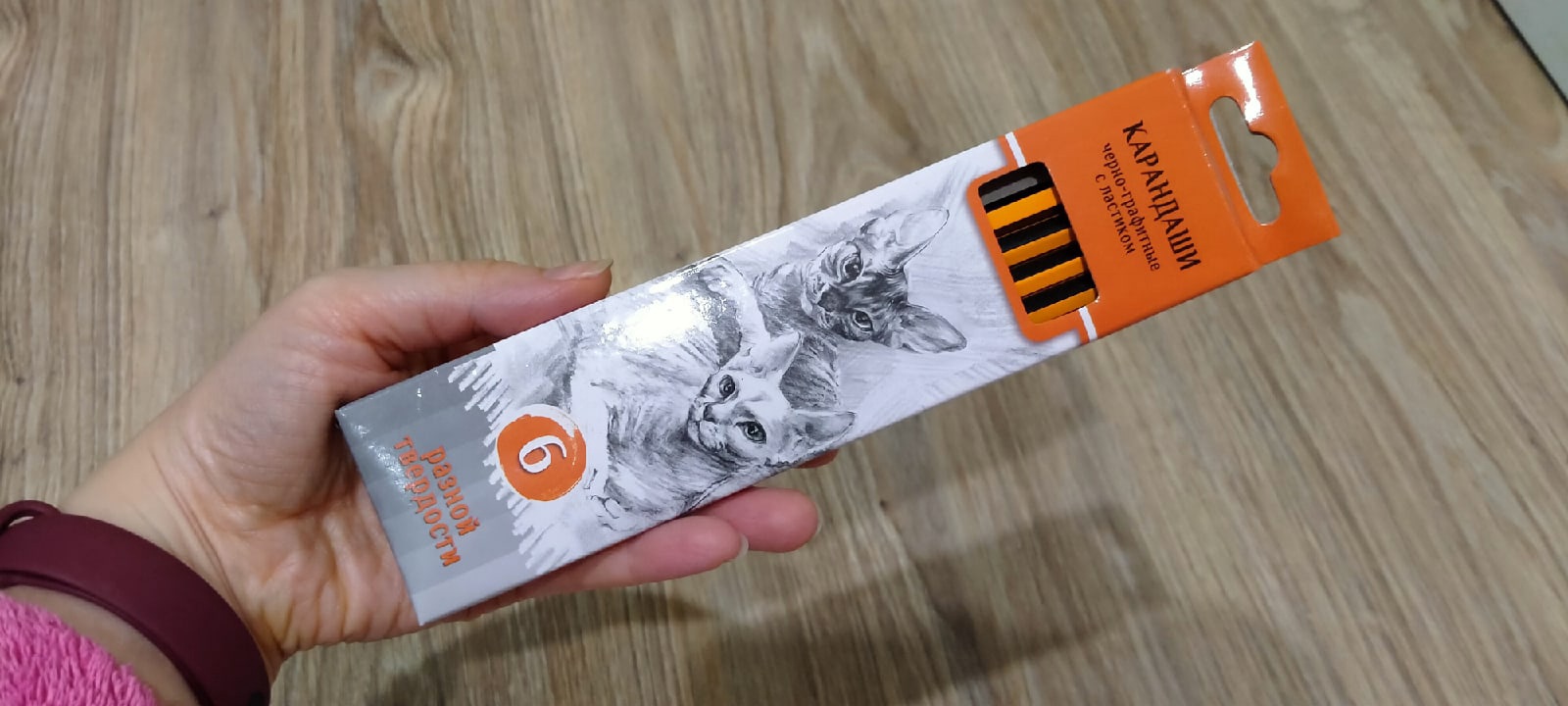 В набор черно-графитных карандашей разной твердости с ластиком входят шесть карандашей: один карандаш 2В, один В, два НВ, один Н и один 2Н. Более мягкие карандаши (2В и В) рисуют более толстой линией, ими рисовать/писать легче. Но и стирать немного сложнее. В школе дочка обычно пользуется карандашами НВ, а уже дома рисует карандашами разной твердости (в зависимости от целей рисования: контур или, например, набросок).