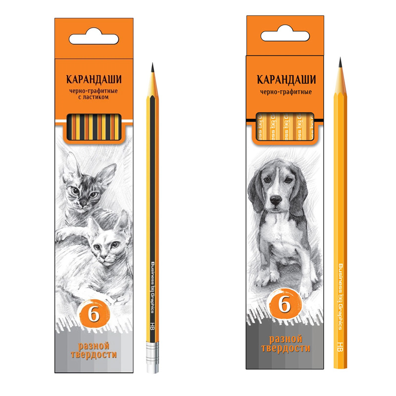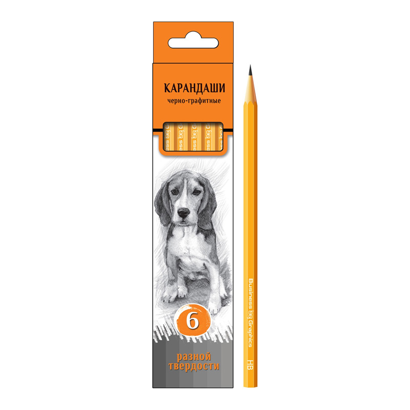 Карандаши чернографитные разной твердости BG «Графика» 6 шт., в ассортименте