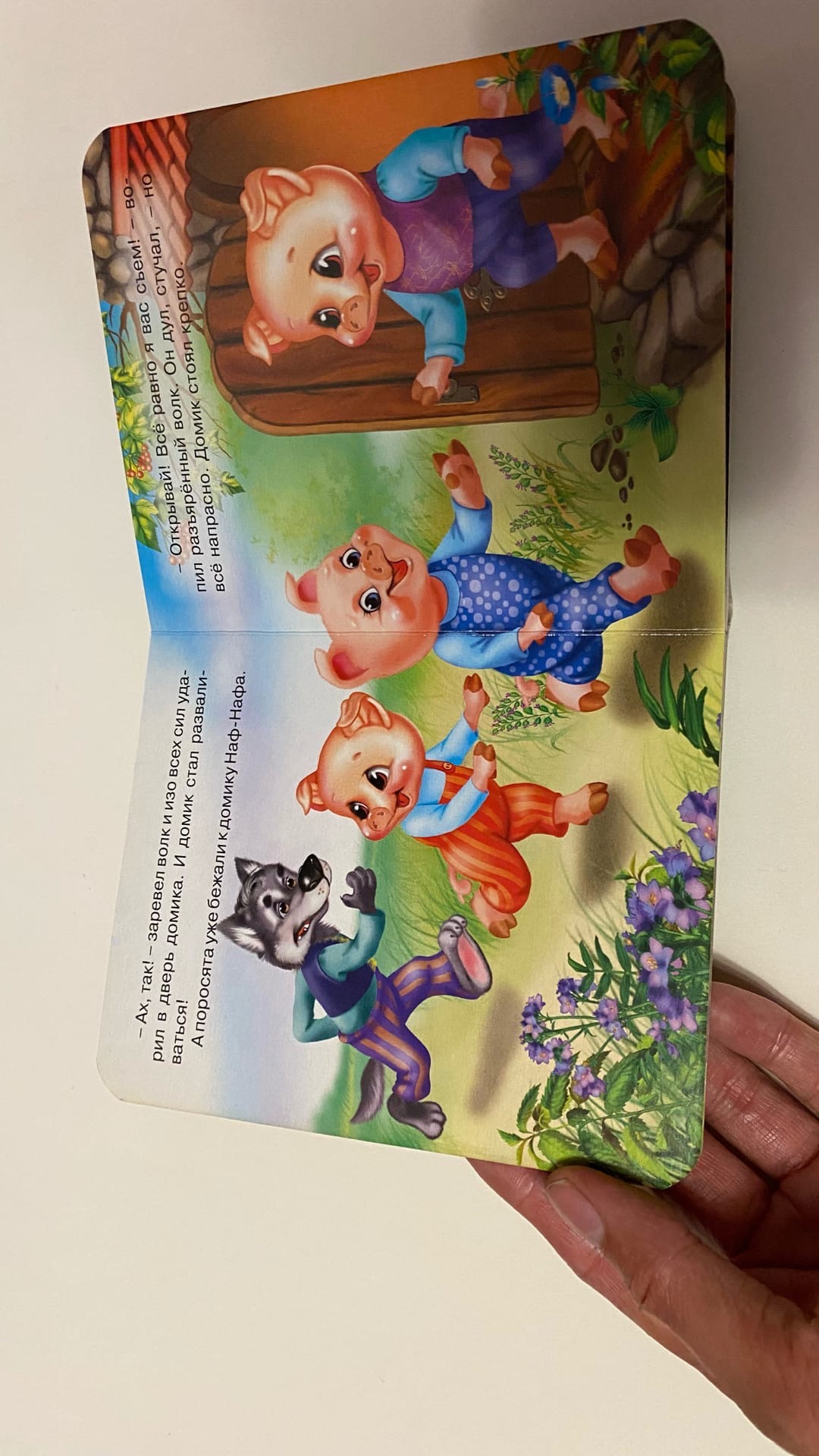 В этой книге три сказки: "Теремок", "Три поросенка", "Машенька и медведь". Иллюстрации к сказке Машенька и медведь будто взяты из другой книги, кардинально отличаются от двух первых сказок.