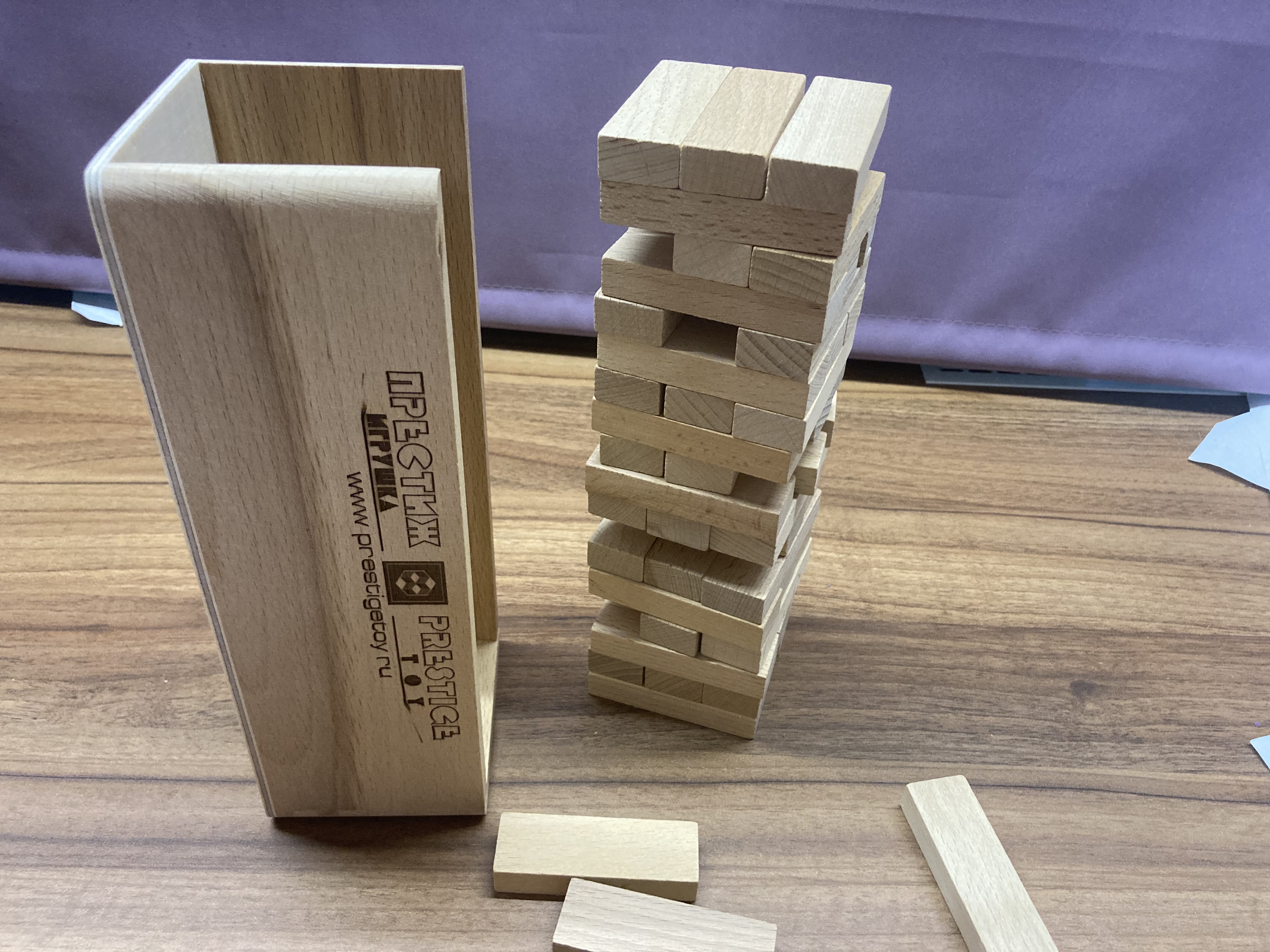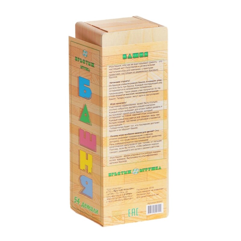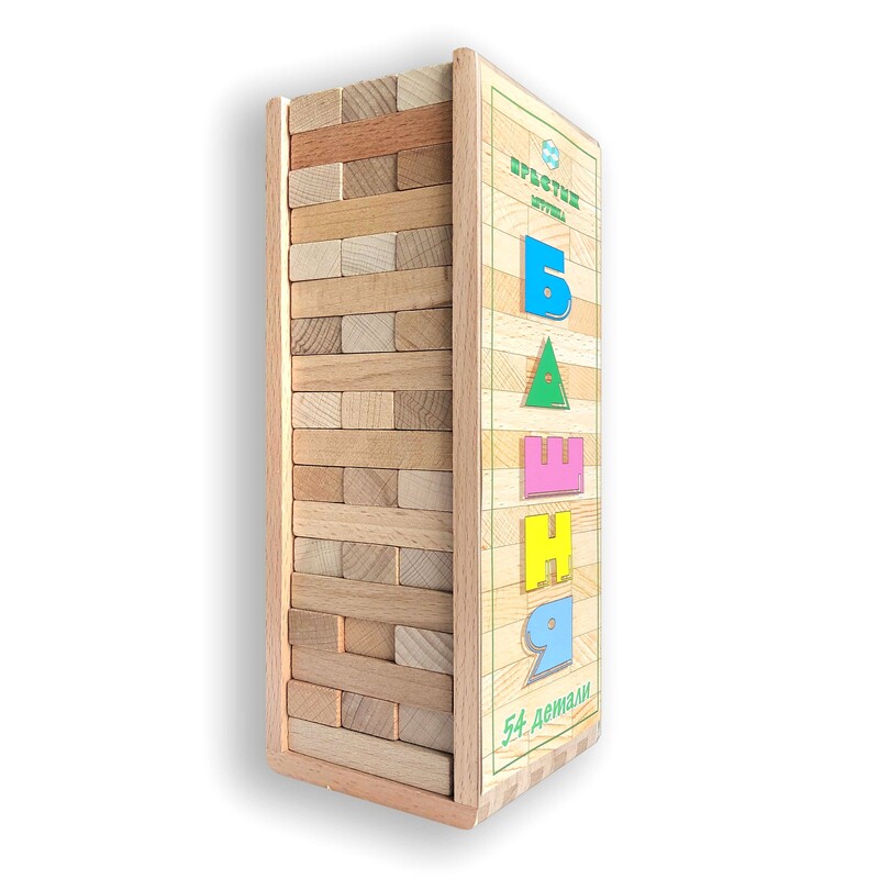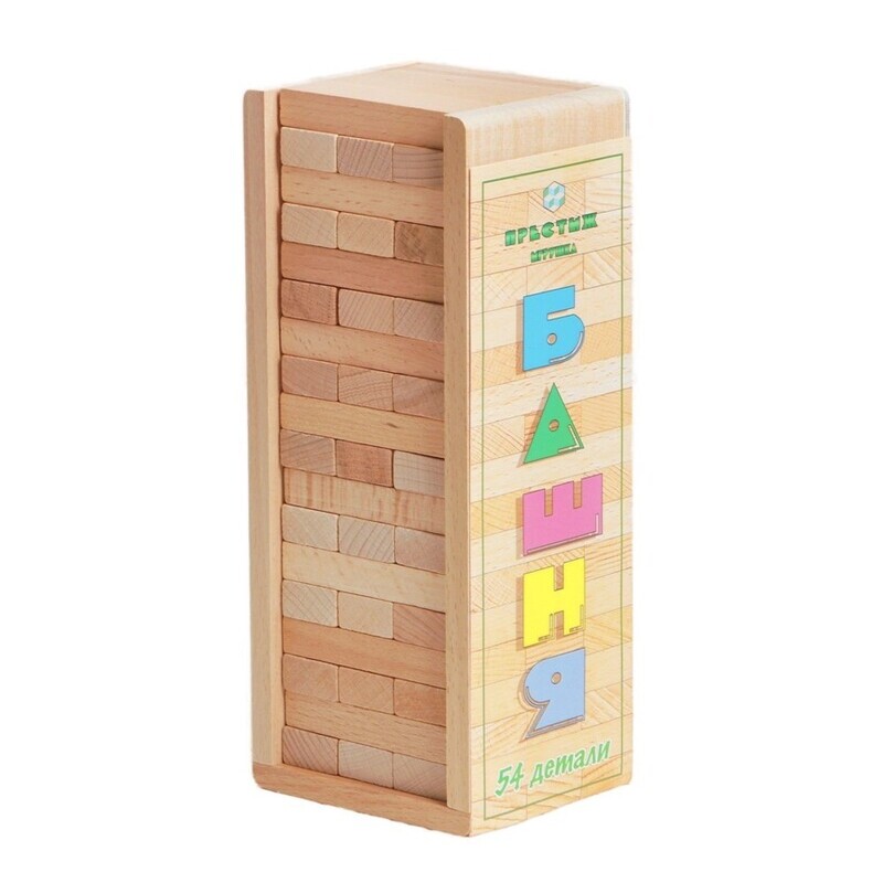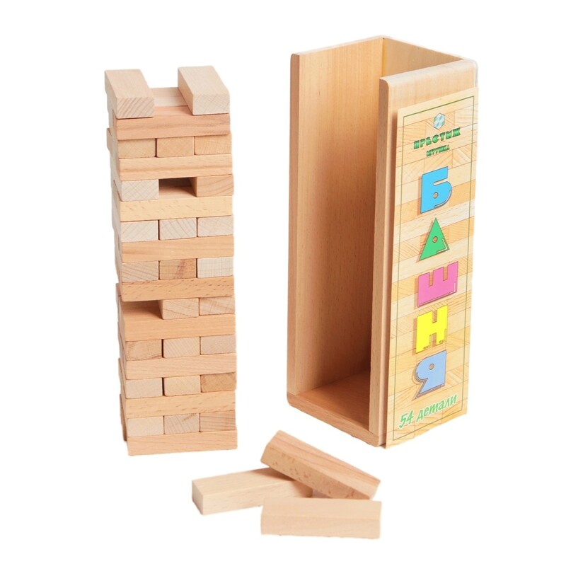 Единственный нюанс: я бы добавила ещё сверху крышечку, но и так тоже неплохо. Бруски плотно укладываются в ровную высокую башню, без труда вытаскиваются одной рукой. Они не скатываются, не скользят, не разъезжаются при вытаскивании. По правилам игры проигравшим считается тот игрок, который не сможет вытащить брусок из башни, не опрокинув всю конструкцию. Поэтому игровой процесс не длиться слишком долго и не успевает надоесть участникам. Игра очень понравилась, рекомендую к обязательному приобретению в каждый дом и в каждую семью!