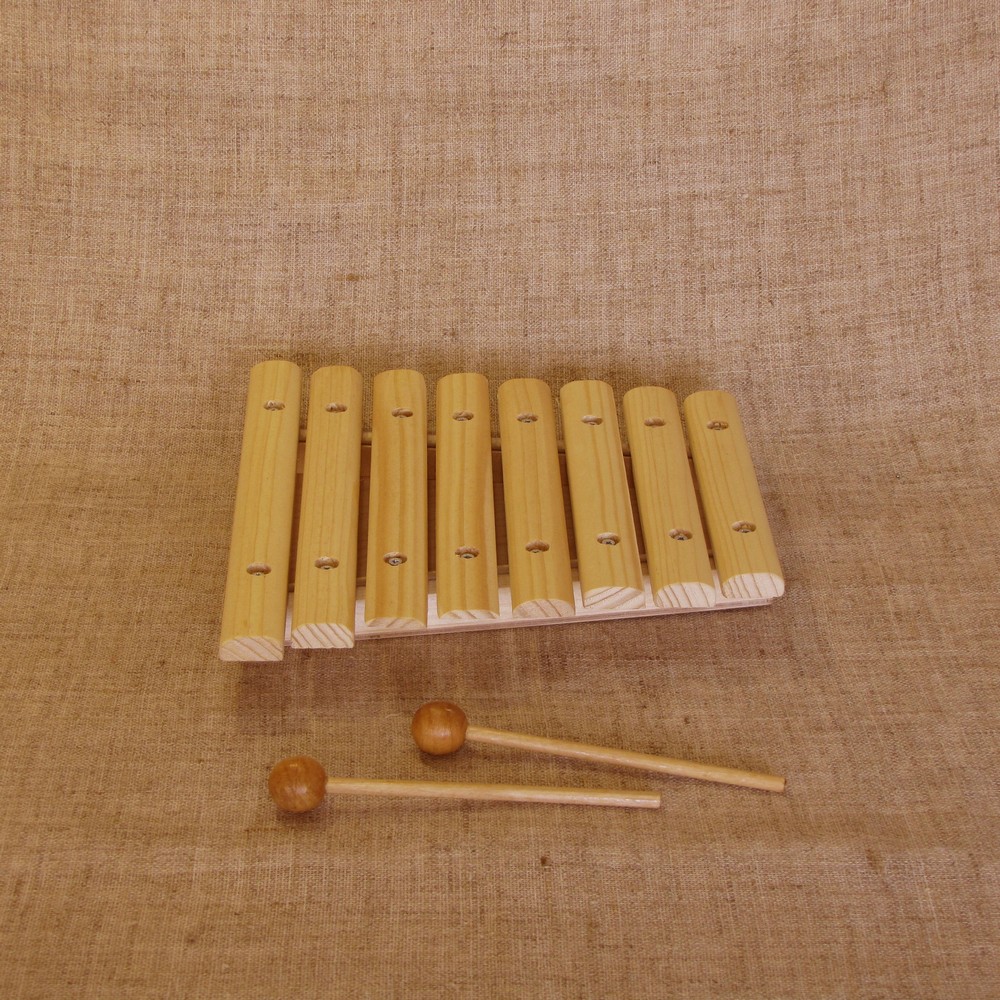 Ксилофон диатонический (8 пластин) – это шумовой музыкальный инструмент. Он представляет собой деревянное основание, на котором закреплены пластины разной длины. Каждая клавиша настроена на определённую ноту. Для извлечения звуков прилагаются ударные палочки с шарообразными наконечниками (малеты), а также цветной буклет с интересной информацией и диск с музыкальными композициями в исполнении народных коллективов. Инструмент создан в Мастерской Сереброва, где чтят вековые традиции русских мастеров. Игровой комплект способствует развитию у мальчиков и девочек музыкального слуха и чувства ритма.