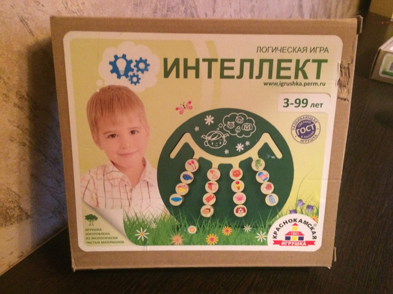 Логическая игра «Интеллект» от ООО «Краснокамская фабрика деревянной игрушки» предназначена для детей от трёх лет и старше (3+). Производителем не указана рекомендуемая верхняя возрастная граница, в связи с тем, что играть в предложенную игру ребёнок может как самостоятельно, так и вместе со взрослыми. Игровые задания имеют разный уровень сложности, и предлагать их малышу следует с учётом особенностей его развития.