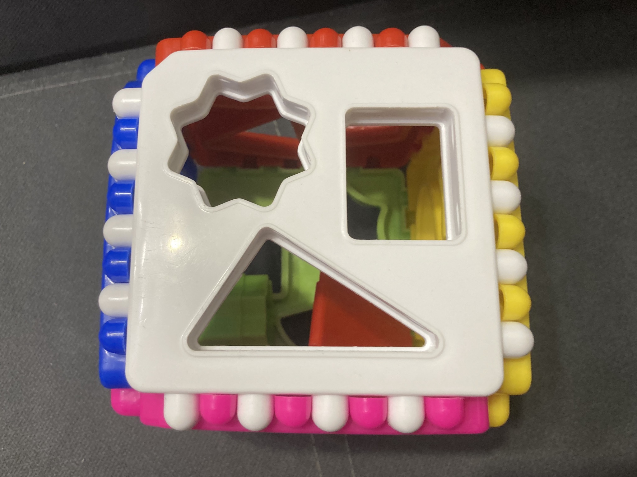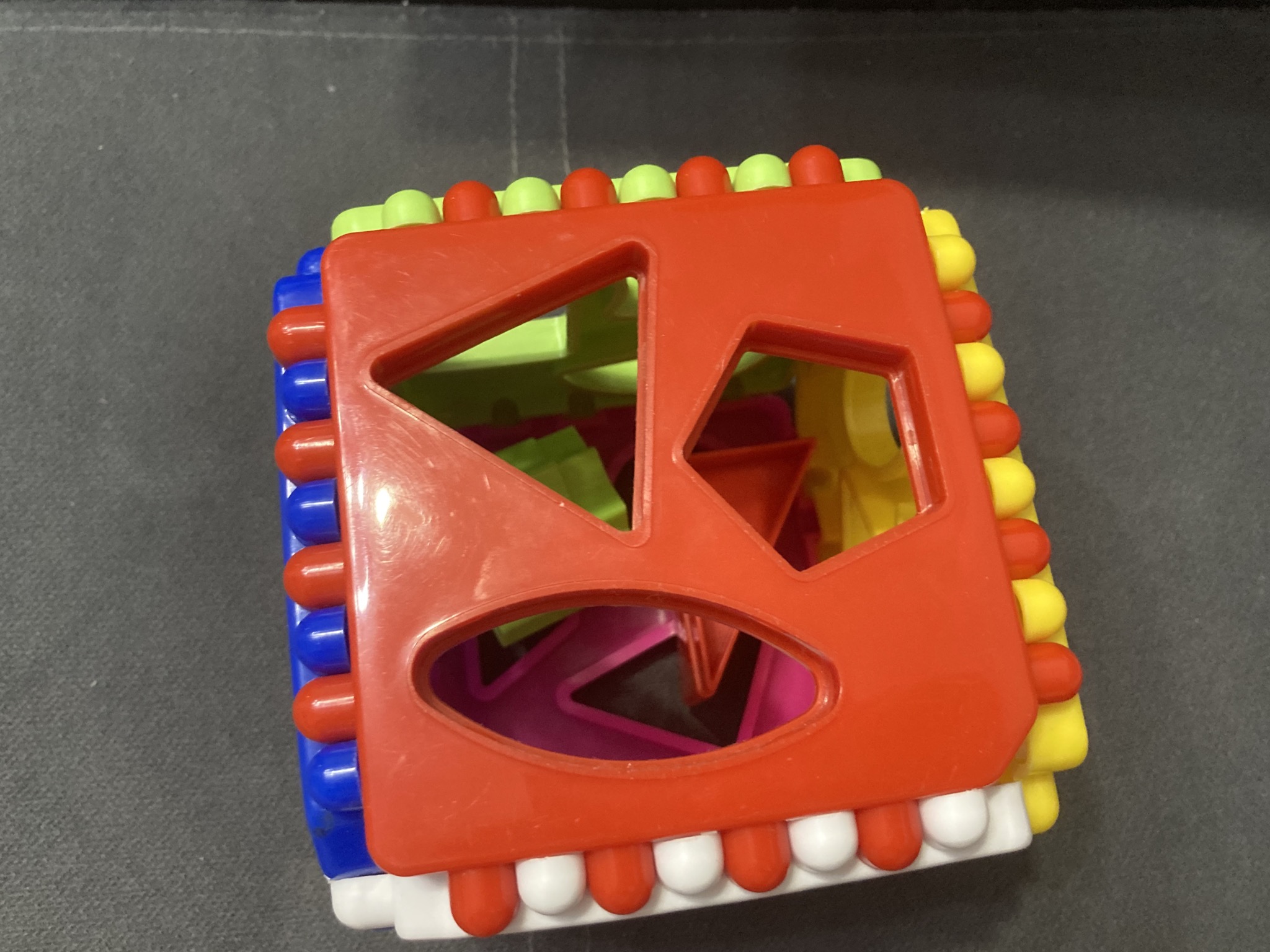 С помощью этого разноцветного логического куба можно изучать различные геометрические фигуры (треугольник, овал, трапеция, ромб, круг, прямоугольник, звезда, сердце и другие), основные цвета (жёлтый, зелёный, синий, белый) и предметы окружающего мира.