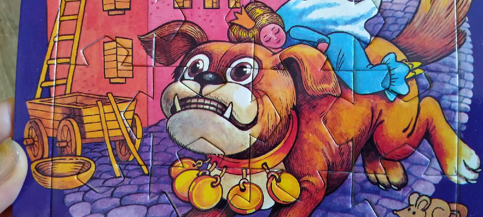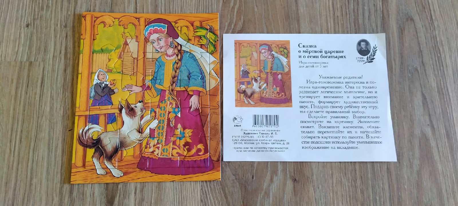 Мини-пазл "Сказка о мертвой царевне и семи богатырях" в реальности намного приятнее по цвету, чем на картонке. Цвета как в советских сказках, неяркие, но и не раздражающие глаза.