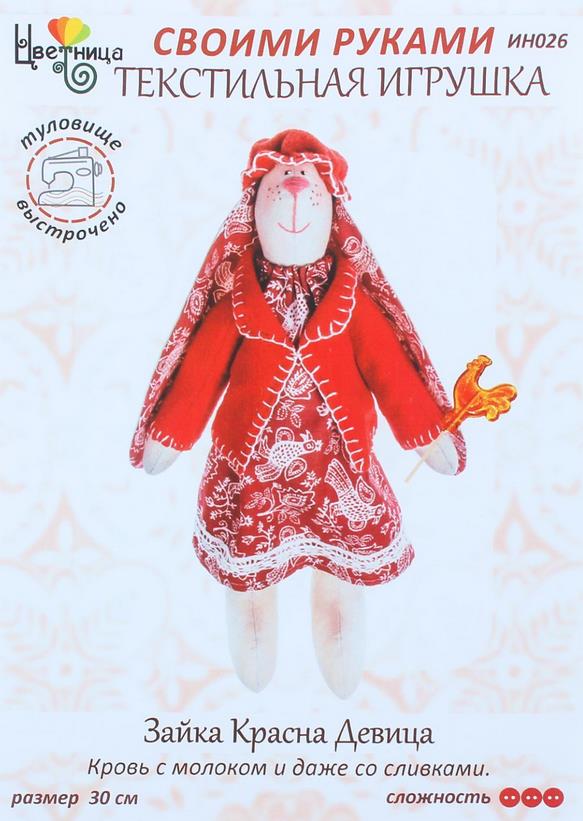 Набор для шитья текстильной игрушки Цветница "Зайка Красна девица" позволит вам создать оригинальное изделие своими руками. Особенностью изготовления является то, что основные детали туловища игрушки уже прошиты по контуру. Нужно только их вырезать, вывернуть, набить наполнителем, зашить отверстие для набивки и перейти к самому главному: соединить детали между собой, раскроить и сшить одежку, оформить личико, добавить декора, тем самым создавая неповторимый образ.