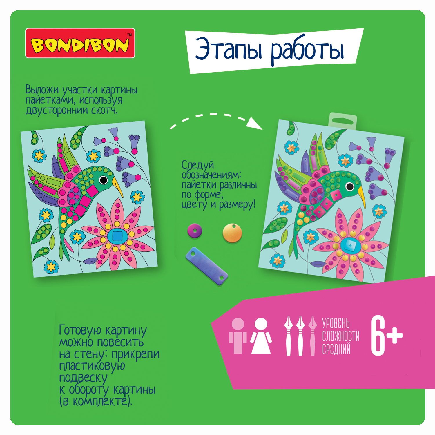 Красочные блестящие пайетки причудливых форм помогут создать волшебную картину с объемными элементами!